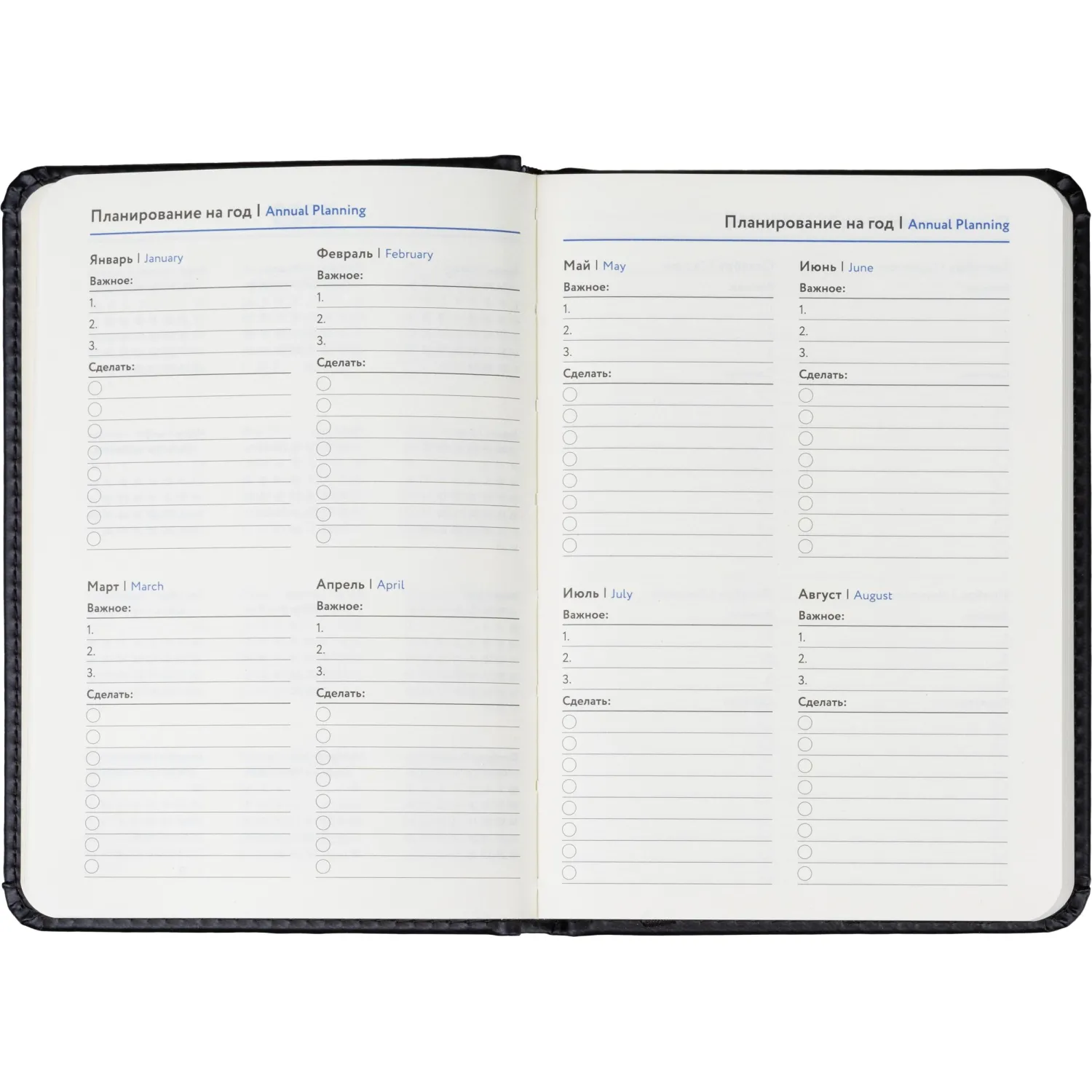 Ежедневник формата А6 подойдёт для кратких записей, заметок и планирования дел в течение дня. Он содержит 136 листов из тонированной офсетной бумаги плотностью 80 г/кв.м с линовкой в линейку. Печать блока выполнена в две краски, что повышает удобство при работе с текстом.