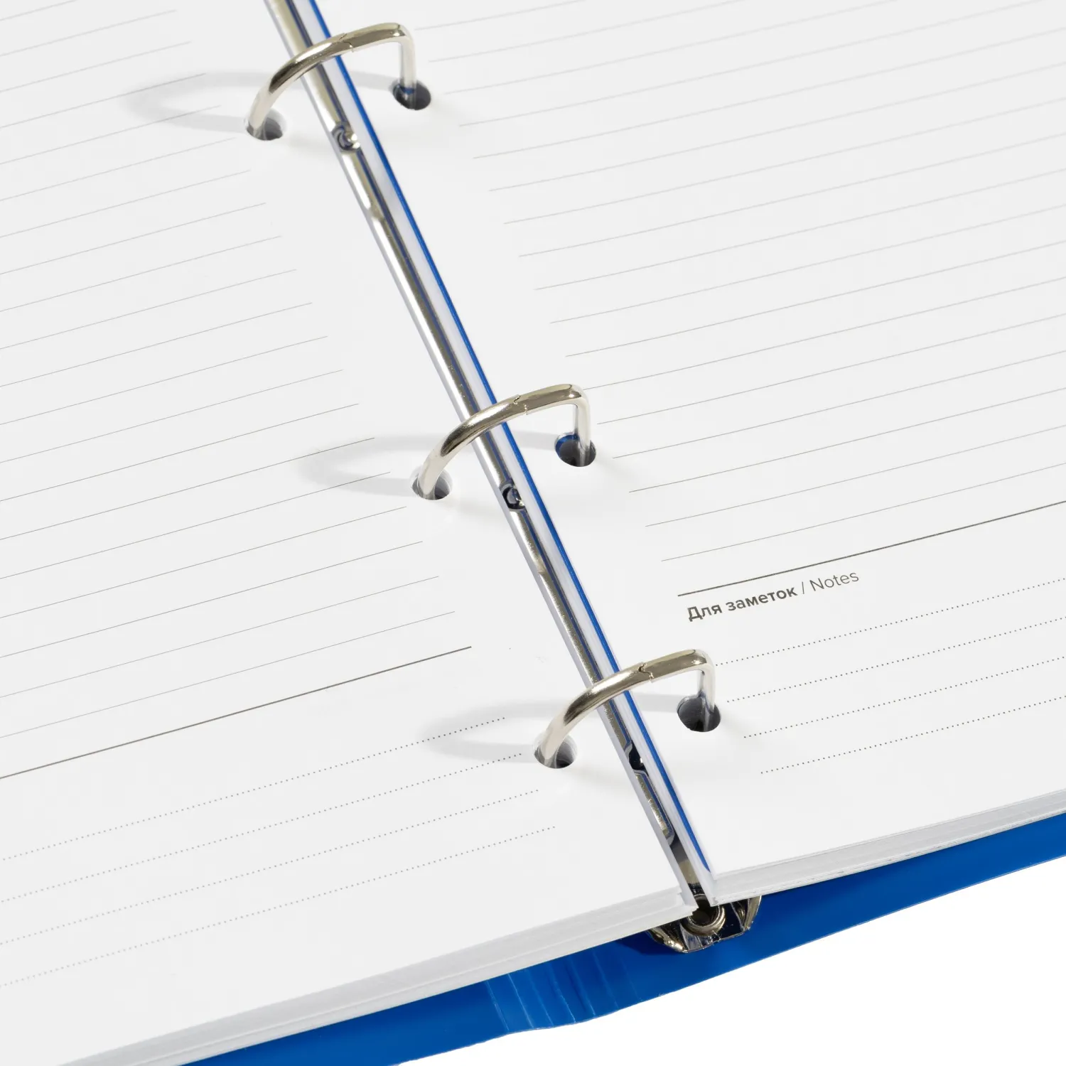 Ежедневник недатированный Attache Digital выполнен в синем цвете и оснащён кольцевым механизмом, обеспечивающим удобный переворот страниц. Обложка изготовлена из плотного пластика с приятной тактильной поверхностью и закрывается на кнопку.