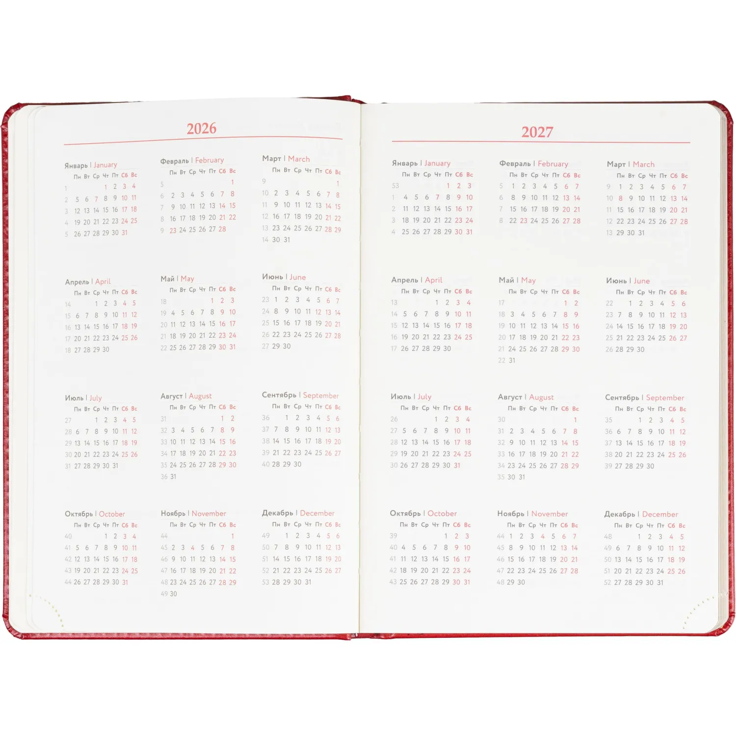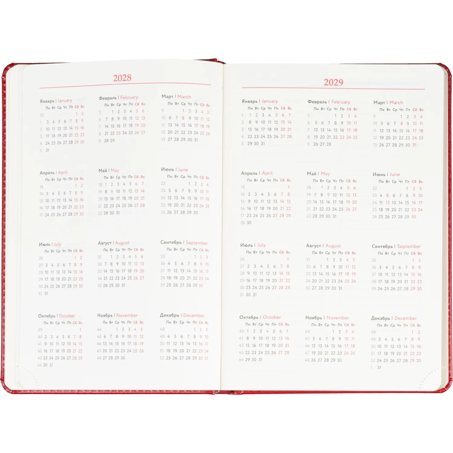 Размер ежедневника составляет 14.5×21.5 см. Внутри размещён календарь на два года. Модель подходит под персонализацию.