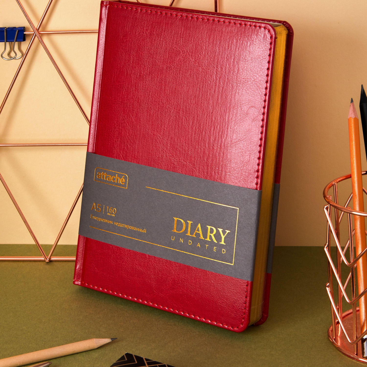 О товаре «Ежедневник недатированный ATTACHE Gold А5, 143х210мм, 160л, бордо»