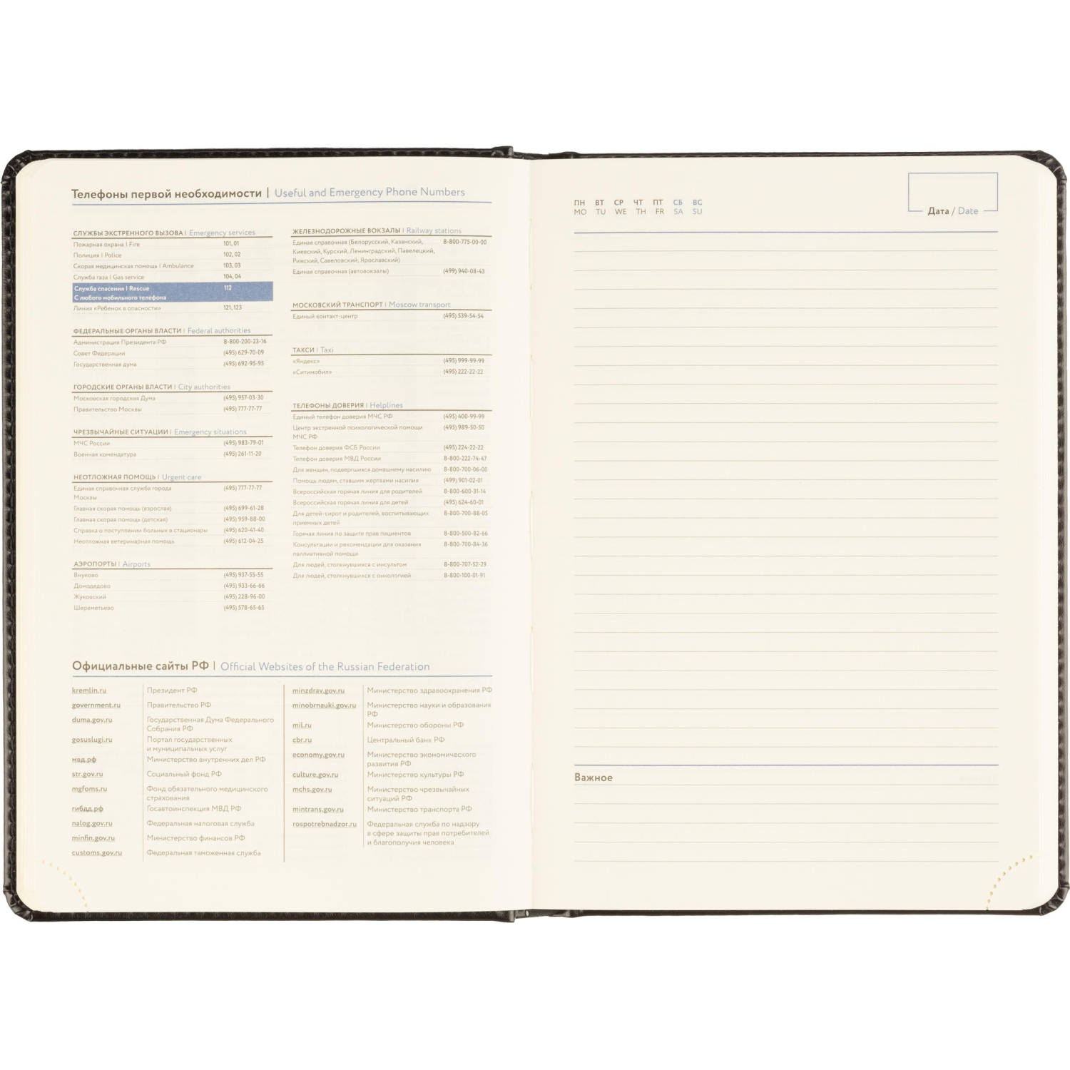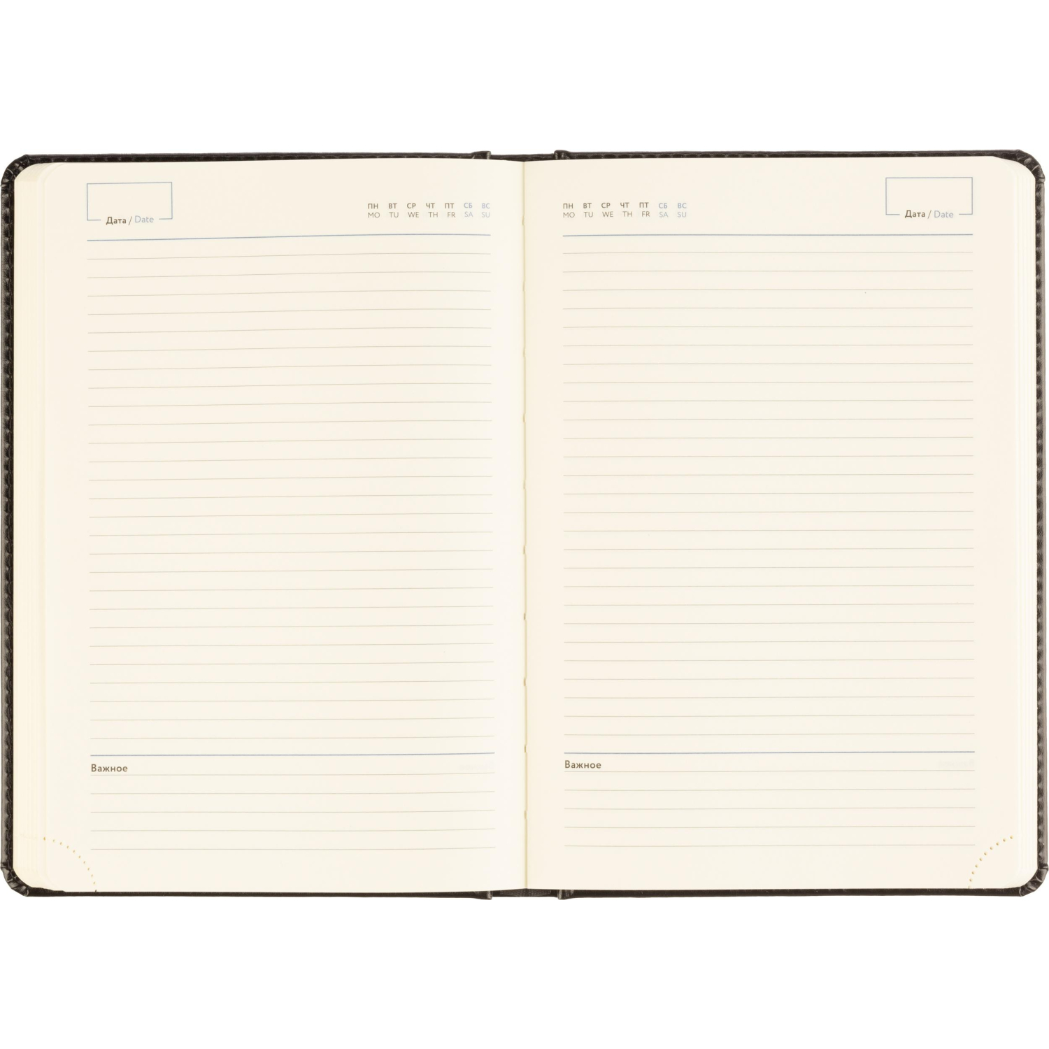 Ежедневник формата А5 подойдёт для планирования и записей в офисе или на встречах. Внутренний блок включает 160 листов из тонированной офсетной бумаги плотностью 80 г/кв.м. Линовка в линейку и двухцветная печать позволяют удобно структурировать информацию.