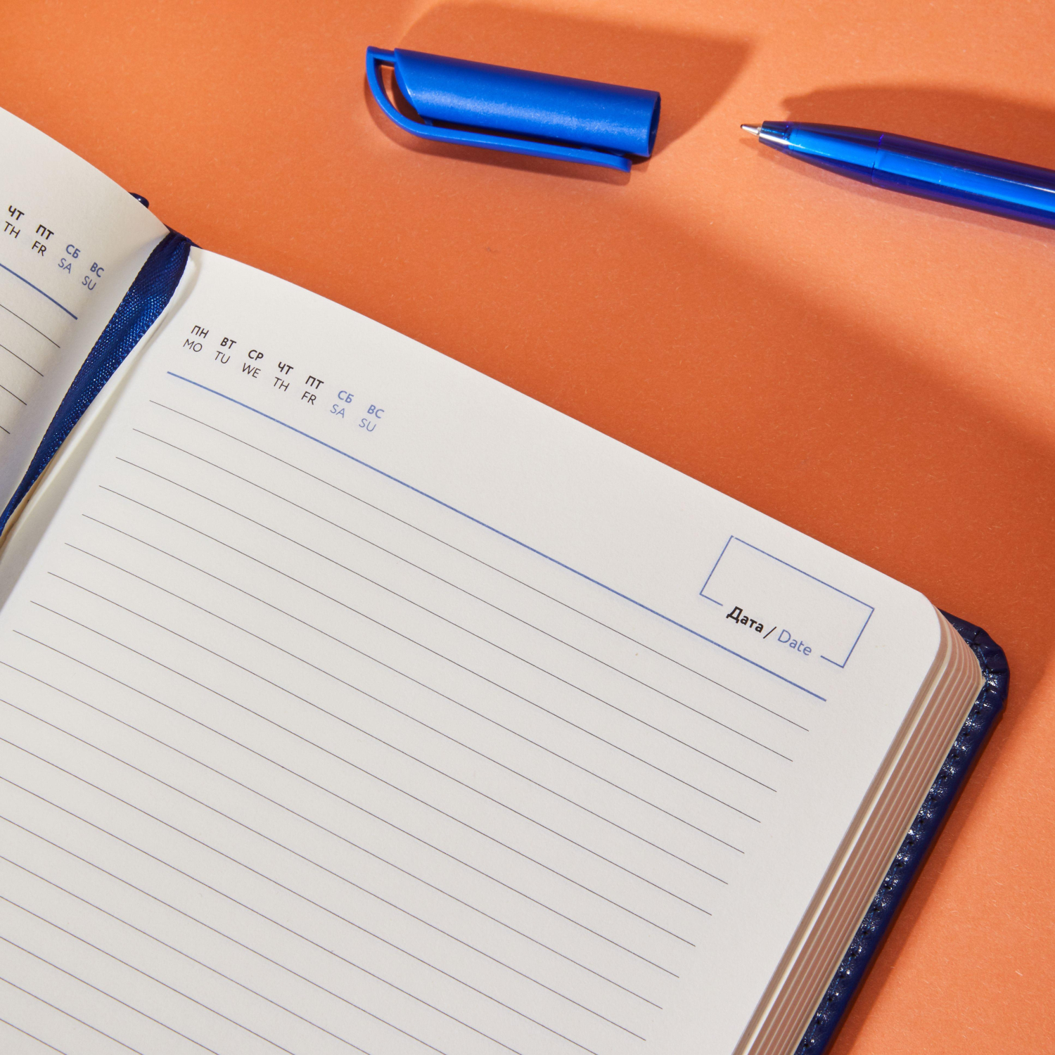 Ежедневник формата А5 подойдёт для планирования дел, заметок и рабочих записей. Он содержит 160 листов из офсетной бумаги плотностью 80 г/кв.м с линовкой в линейку. Бумага тонированная, с печатью в две краски, что делает текст более читаемым и удобным для восприятия.