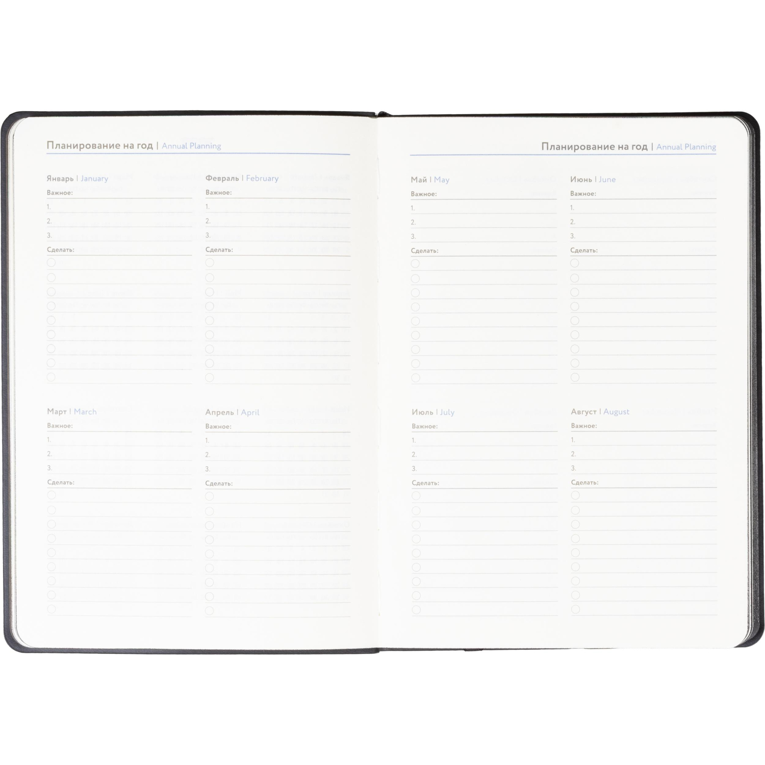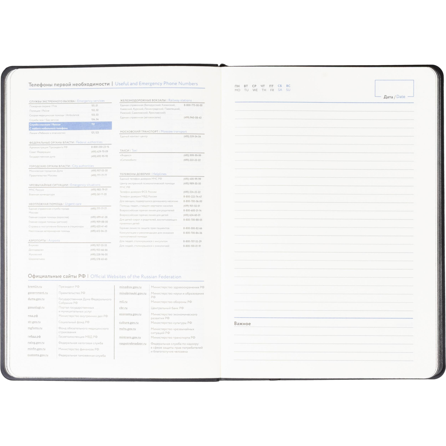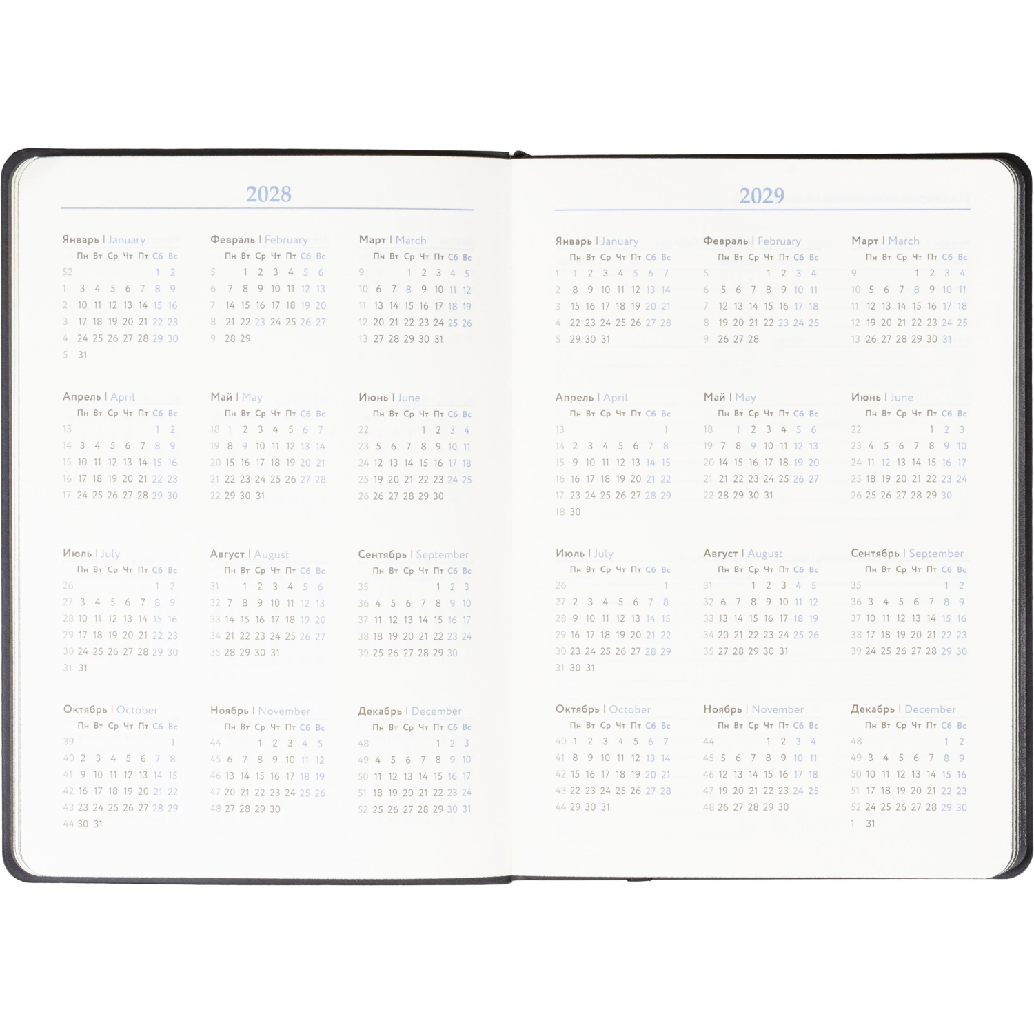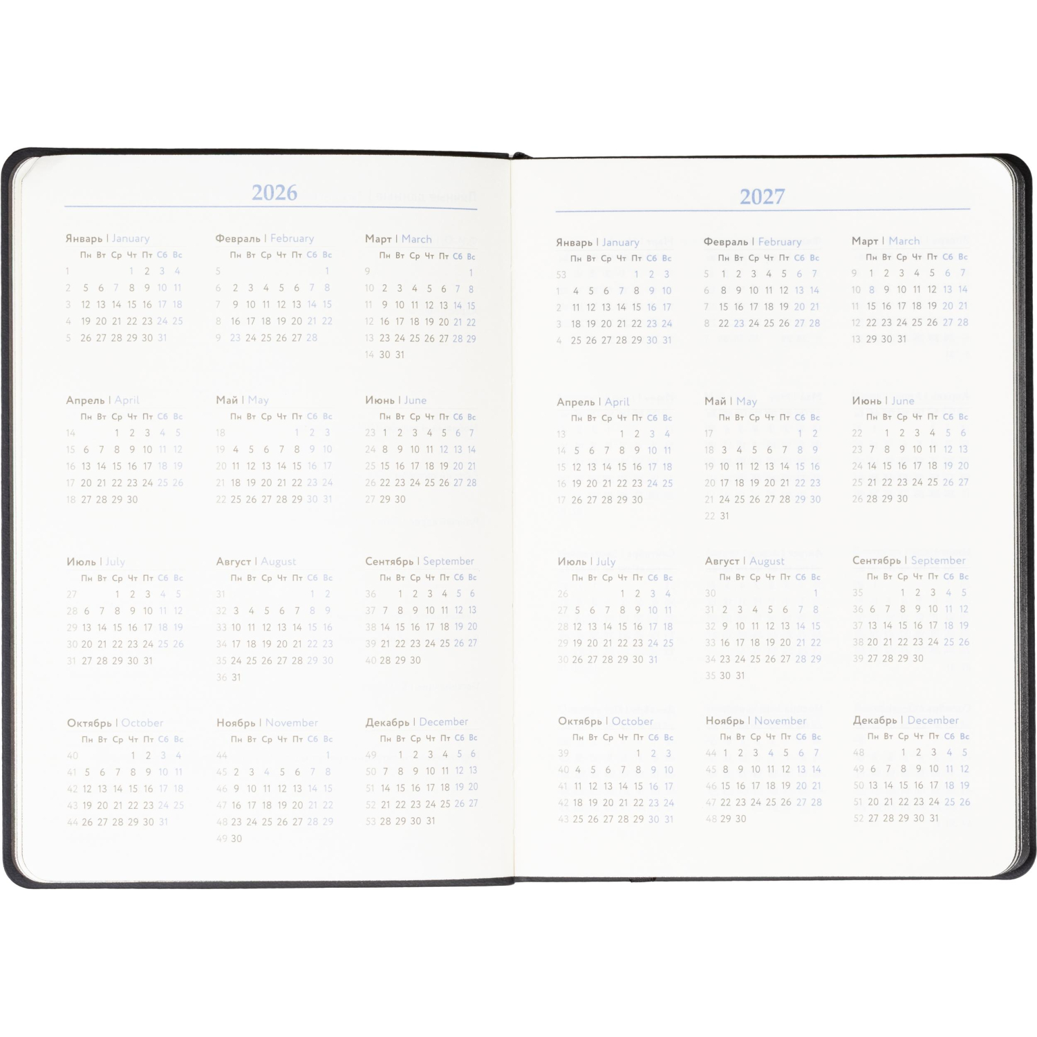 Размер ежедневника составляет 14.2×20.5 см. Внутри размещён календарь на два года. Модель подходит под персонализацию.