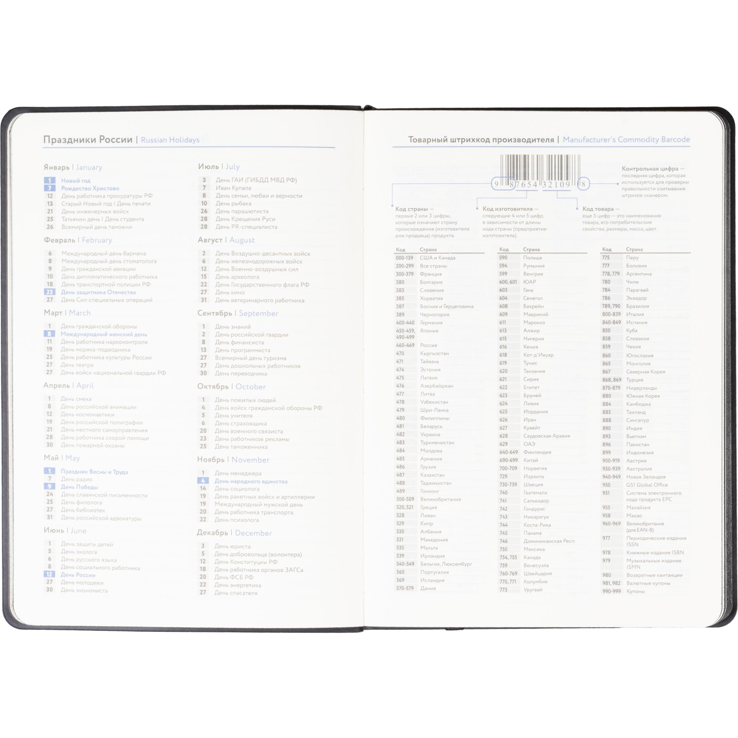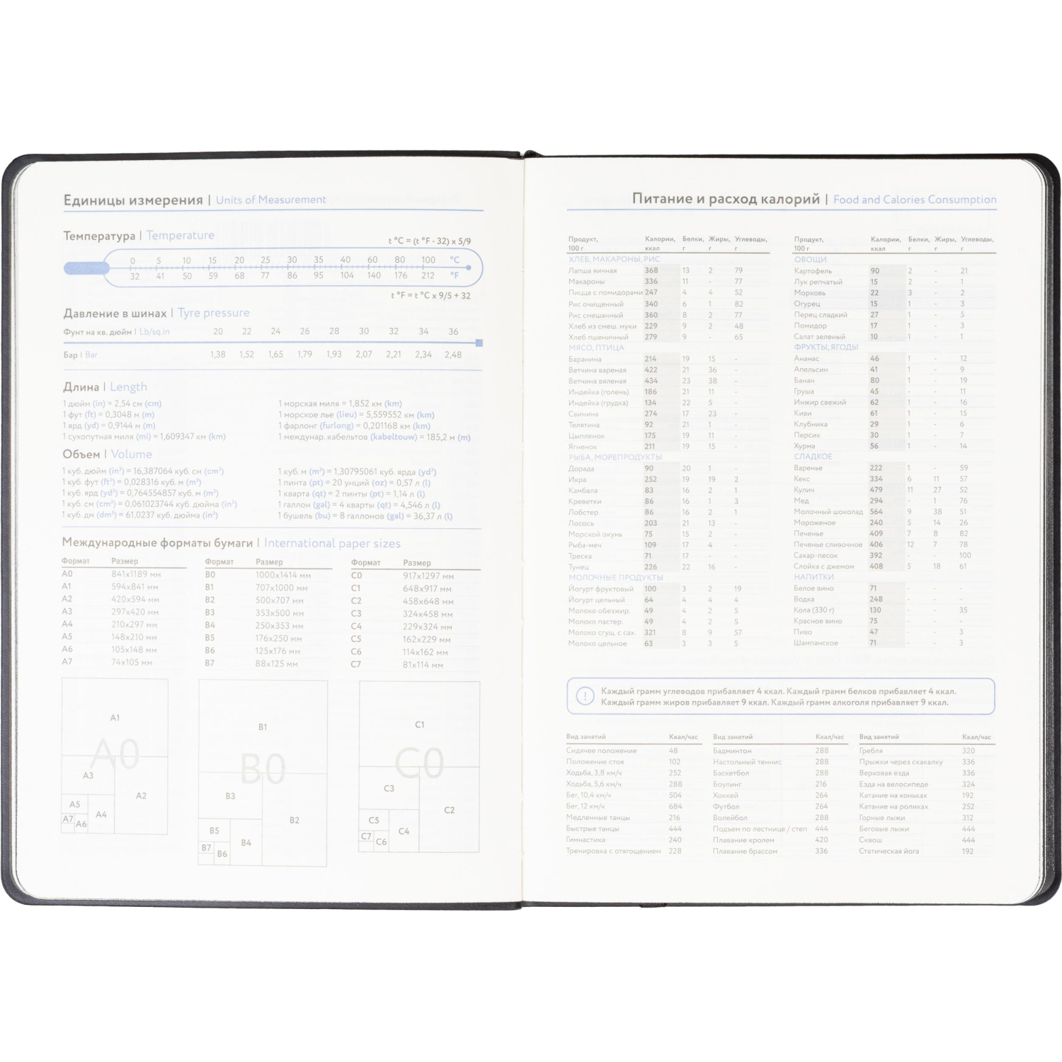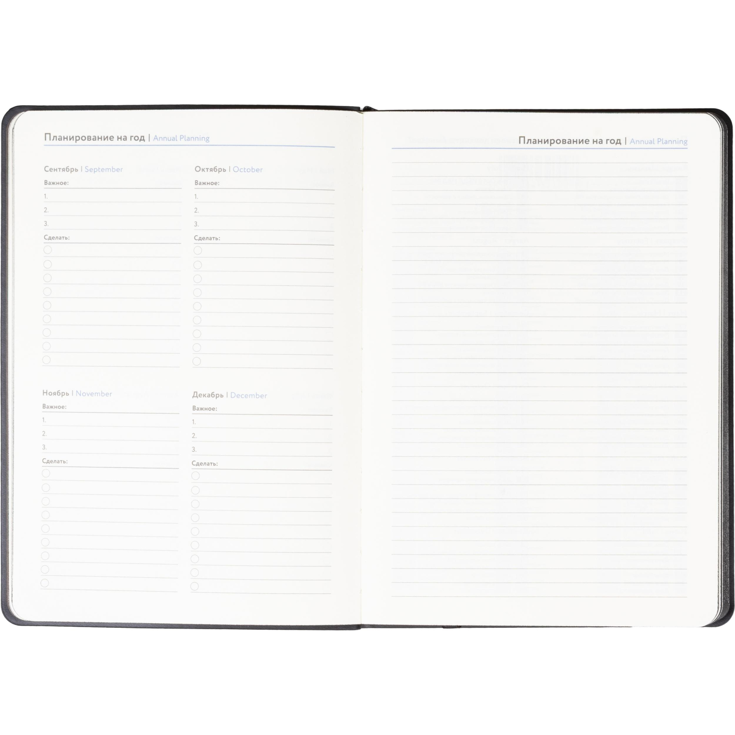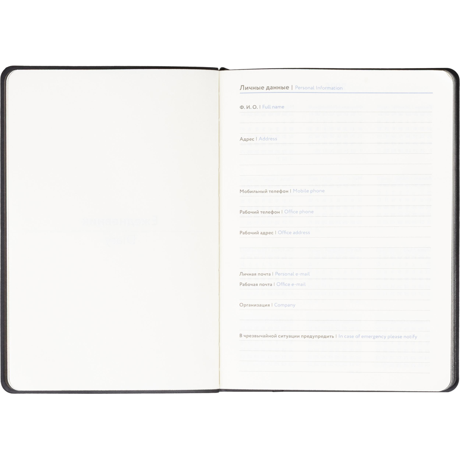 Размер ежедневника составляет 14.2×20.5 см. Внутри размещён календарь на два года. Модель подходит под персонализацию.