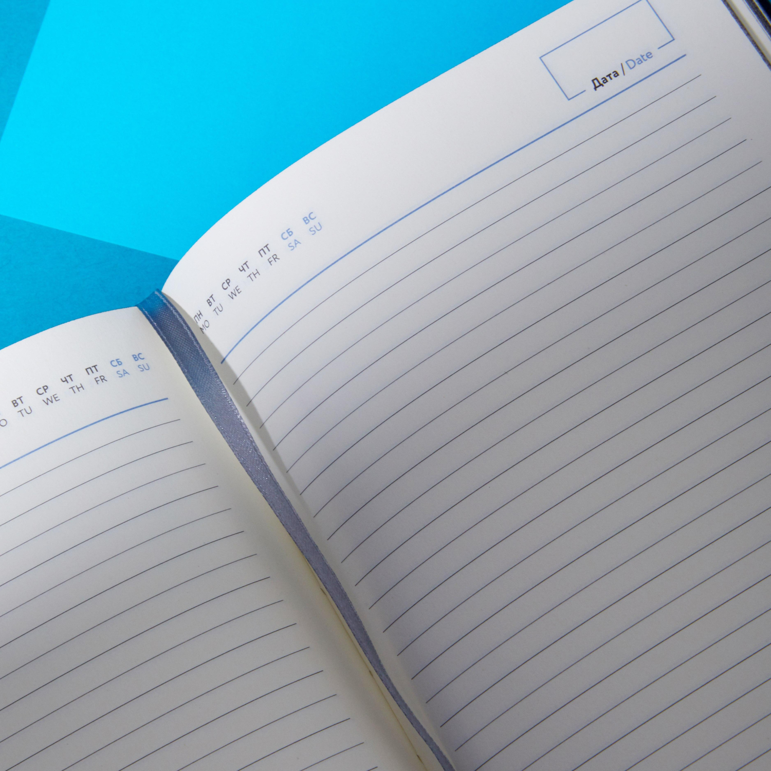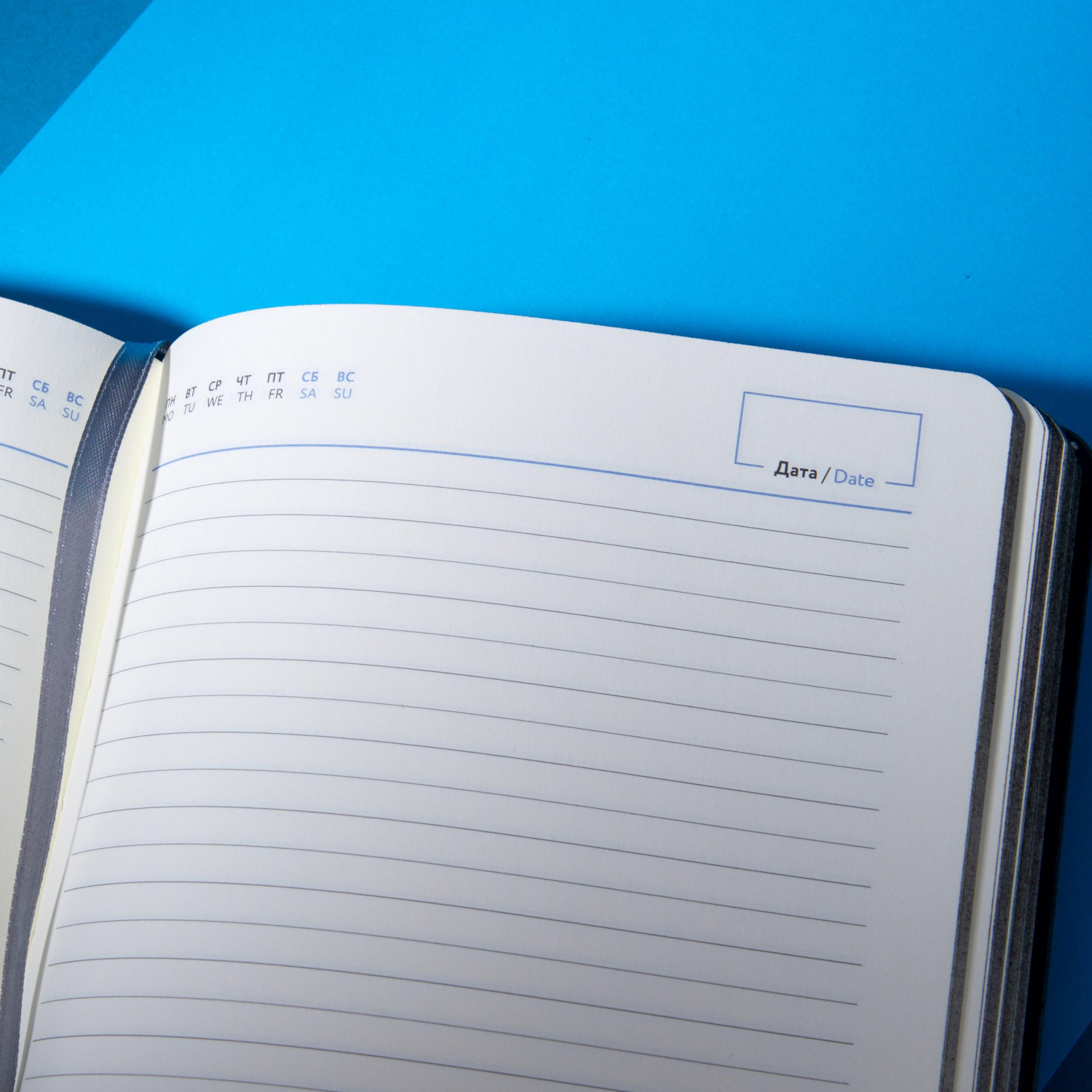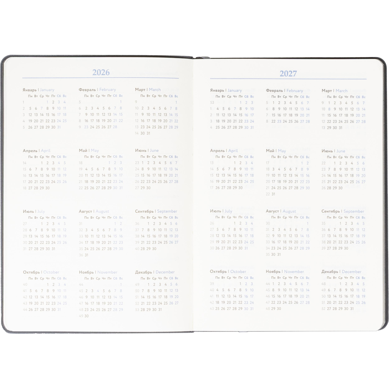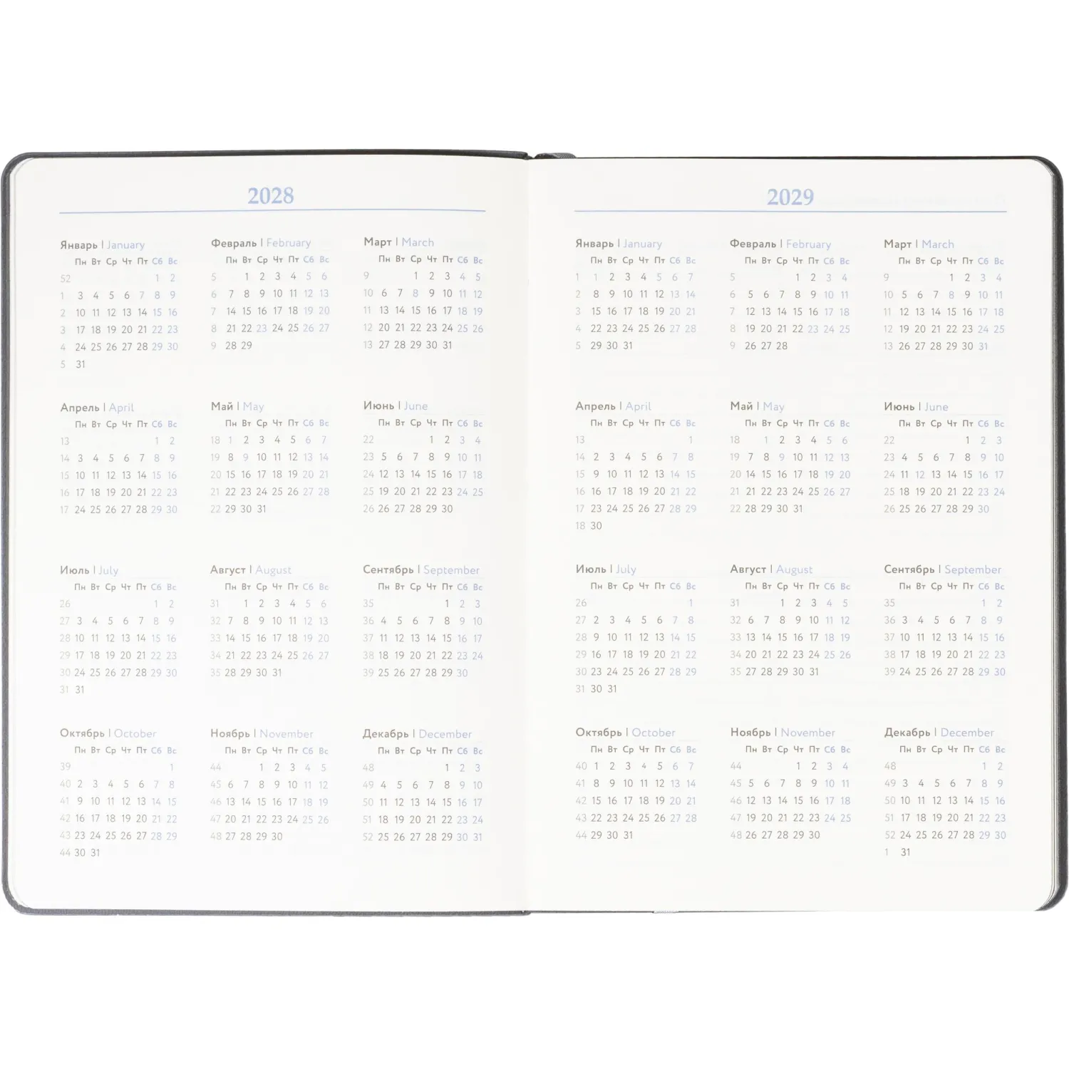 Размер ежедневника — 14.2×20.5 см. Внутри предусмотрен календарь на два года. Ежедневник подходит под персонализацию.