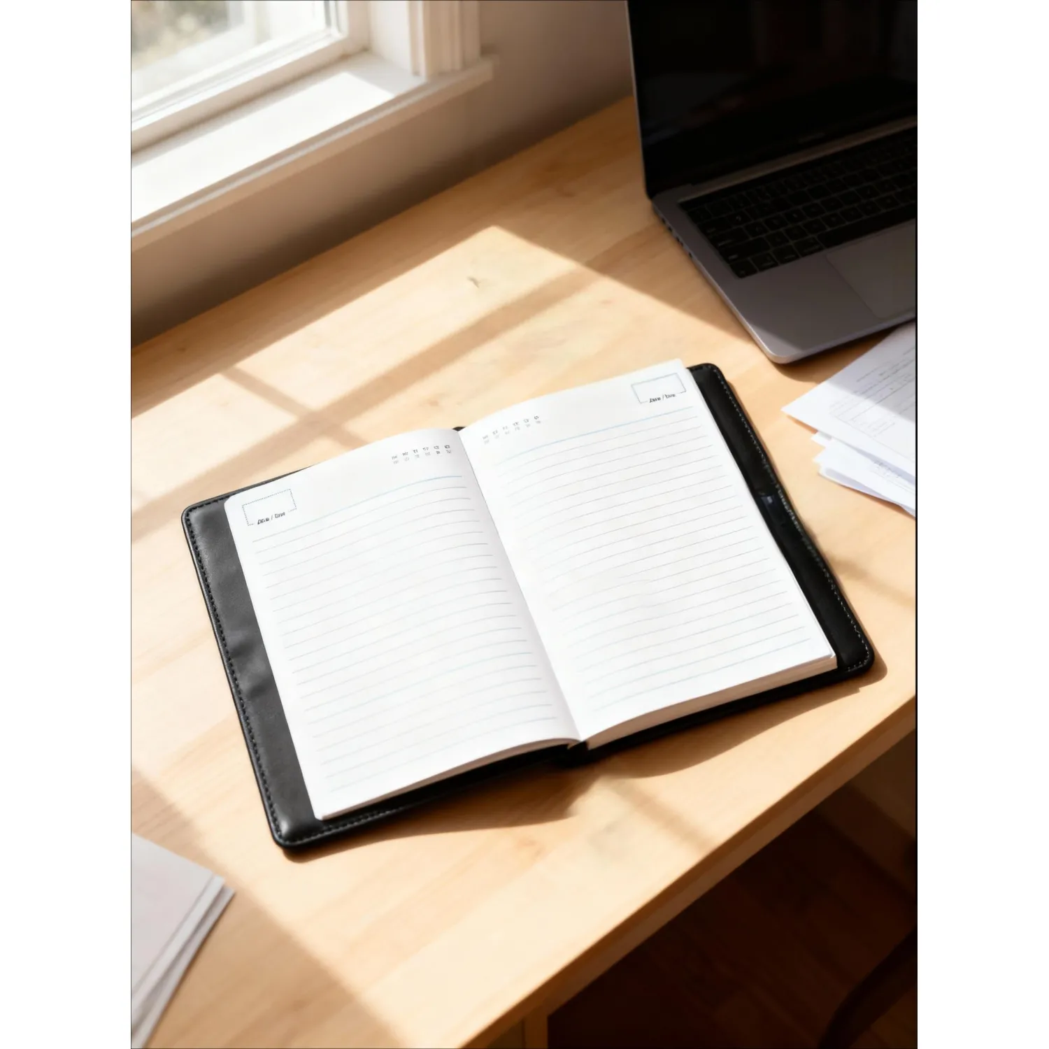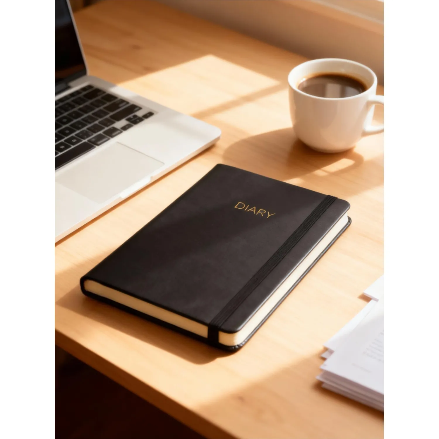 Ежедневник недатированный Attache Dairy формата A5 подходит для организации деловых и личных записей. Изделие выполнено в вертикальной ориентации и имеет размер 140×200 мм. Твёрдая обложка из искусственной кожи чёрного цвета оформлена в лаконичном стиле с элементами тиснения фольгой. Для удобства предусмотрена фиксирующая резинка, удерживающая ежедневник в закрытом состоянии. Внутренний блок состоит из 136 листов (272 страницы) белой офсетной бумаги плотностью 70 г/кв.м, напечатанной в две краски.