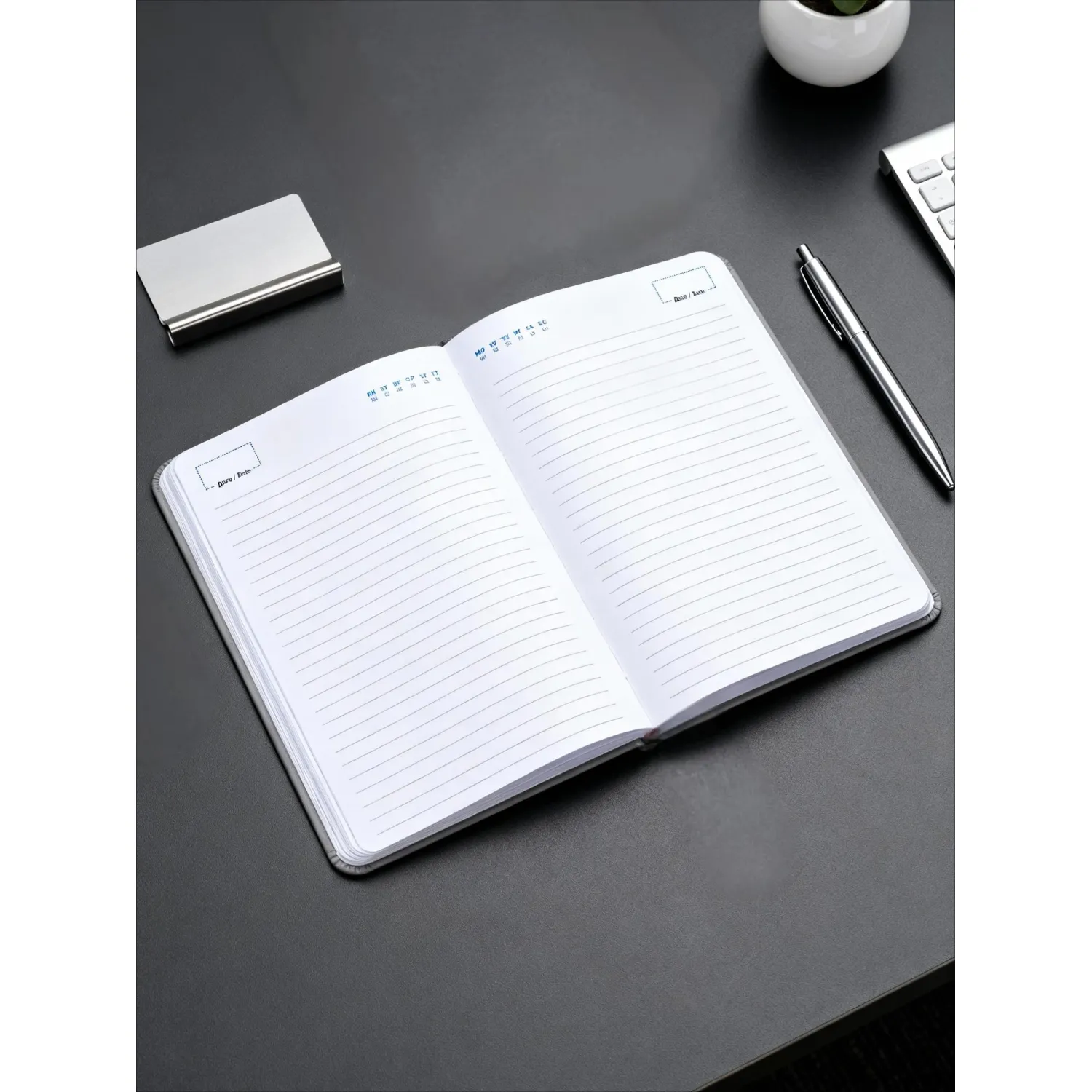 Внутренний блок состоит из 136 листов (272 страницы) белой офсетной бумаги плотностью 90 г/кв.м, отпечатанной в одну краску. Страницы разлинованы в линейку и не датированы, что позволяет свободно распределять записи. Крепление выполнено ниткошвейным способом, листы имеют скруглённые углы, вырубка и перфорация отсутствуют. Для удобства навигации вшита тканевая закладка ляссе.