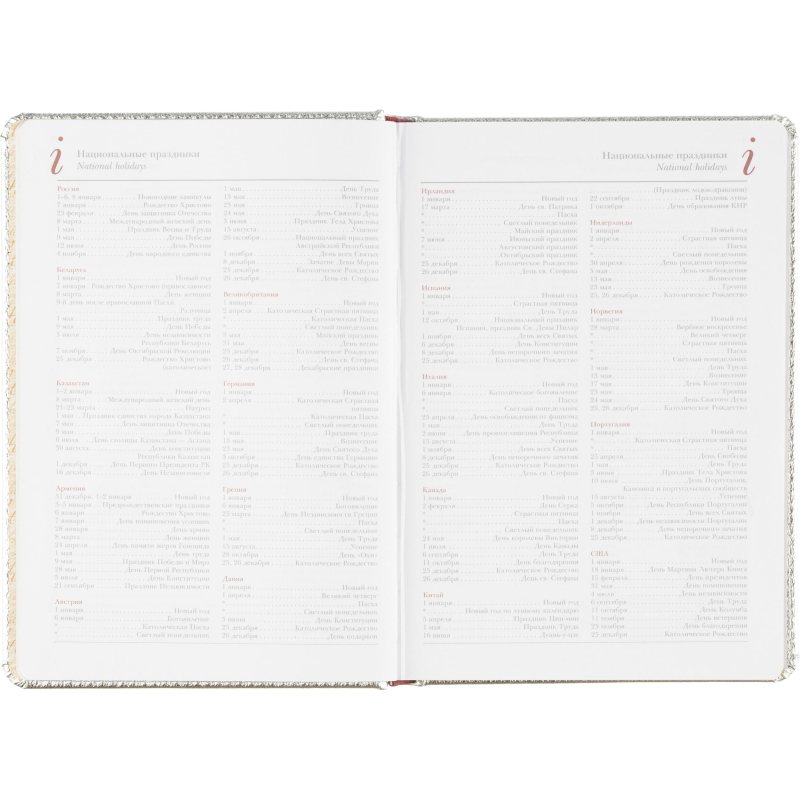 Недатированный ежедневник «Sidney Nebraska» формата A5 — это идеальный помощник для тех, кто ценит рационализм и функциональность. Твёрдая обложка из искусственной кожи с глянцевой поверхностью, имитирующей натуральную кожу, и надёжный книжный переплёт обеспечивают долговечность и защиту от механических повреждений. Ежедневник украшен отстрочкой по периметру в тон, скруглёнными углами, бордовой закладкой-ляссе и серебристым обрезом.