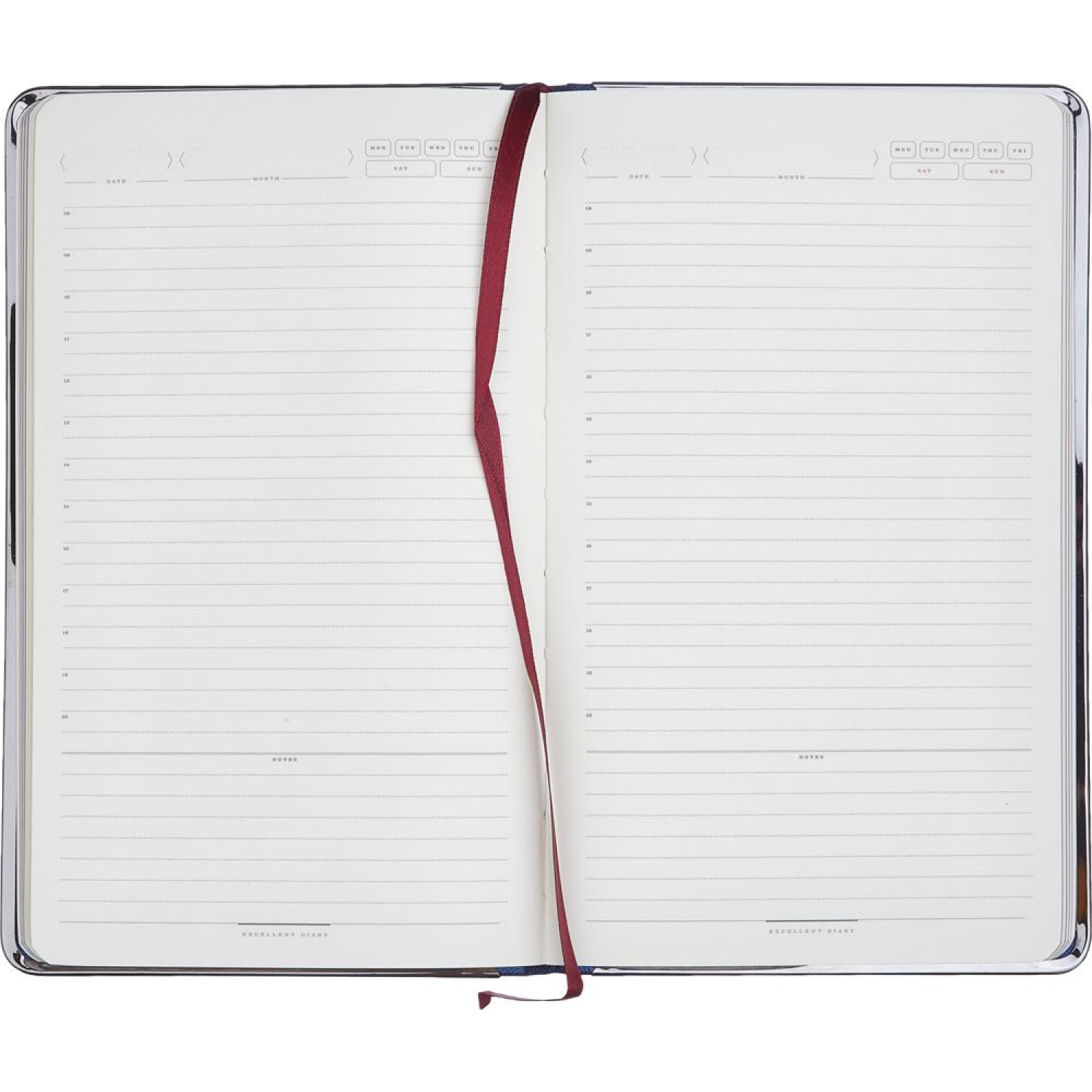 Внутренний блок состоит из 136 листов (272 страницы) кремовой офсетной бумаги плотностью 90 г/кв.м., с печатью в два цвета. Листы разлинованы в линейку, что помогает организовать записи. Ляссе помогает быстро находить нужную страницу. Листы недатированы, что позволяет начать использовать ежедневник в любой день года.