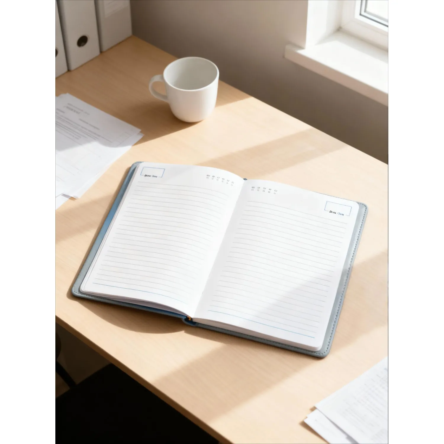 Ежедневник недатированный Attache Diary формата A5 предназначен для удобного планирования и ведения записей в течение всего года. Изделие имеет размер 140×200 мм, вертикальную ориентацию и твёрдую обложку из искусственной кожи синего цвета, оформленную в однотонном стиле с элементами тиснения фольгой. Для надёжной фиксации предусмотрена эластичная резинка-держатель. Внутренний блок включает 136 листов (272 страницы) белой офсетной бумаги плотностью 70 г/кв.м, напечатанной в две краски.