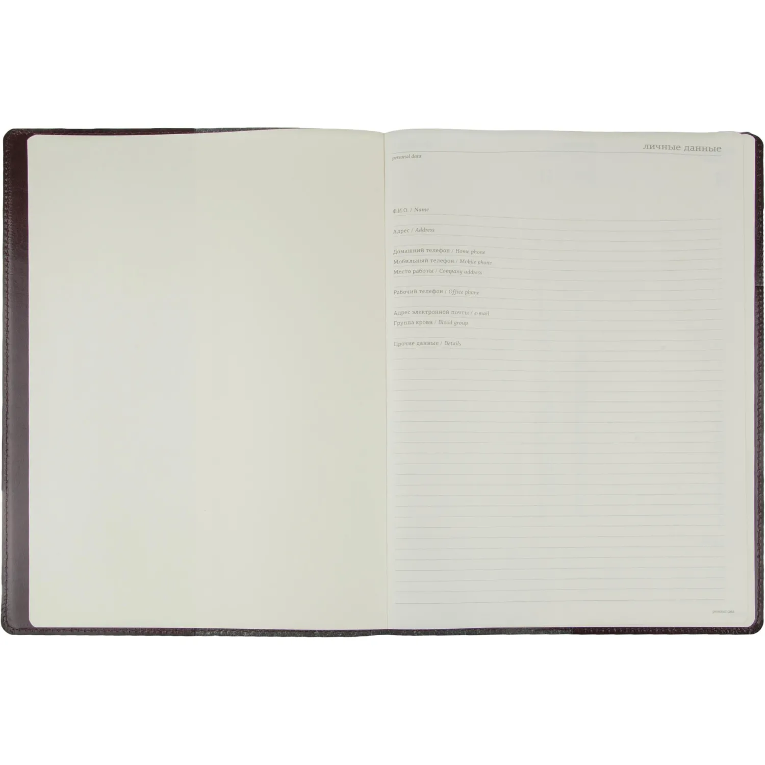 Еженедельник со сменным блоком выпускается в настольном формате А4 (размер: 210×290 мм) и состоит из 128 страниц. Для них использована бежевая бумага высшего сорта, обладающая плотностью 70-90 г/кв. м. На 18 страницах размещена справочная информация с полезными сведениями из различных областей. Под обложкой расположена кожаная петля для ручки, поэтому еженедельник удобно брать в поездки. Есть специальный карман для хранения визиток.