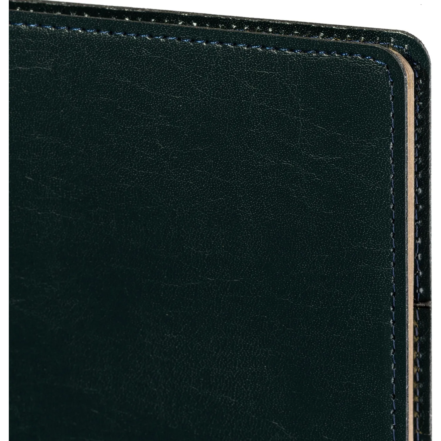 Еженедельник-портфолио серии Profy — необходимый инструмент на столе делового человека, стремящегося к карьерному и личностному росту. Мягкая обложка в универсальном офисном стиле выполнена из высококачественной рециклированной синей натуральной кожи, подходит для любых видов полиграфического тиснения. Матовая поверхность кожи подчёркнута золотым металлизированным обрезом. По периметру обложки проходит строчка, прошитая нитками в тон.