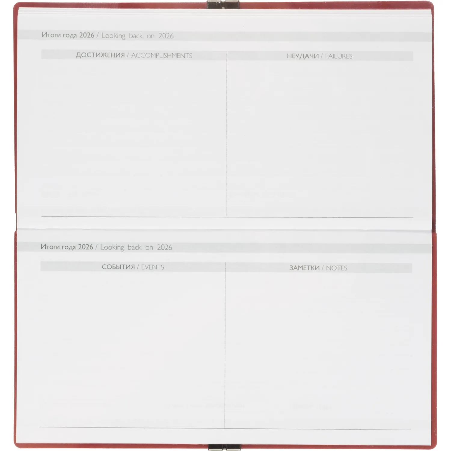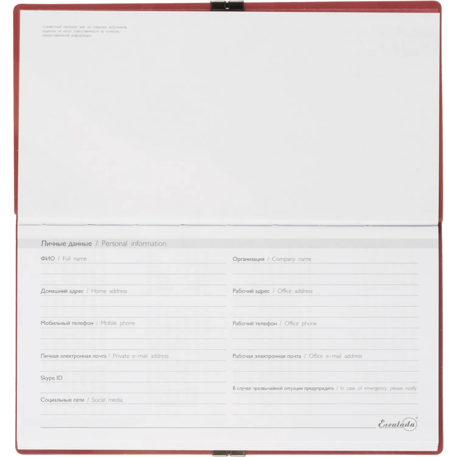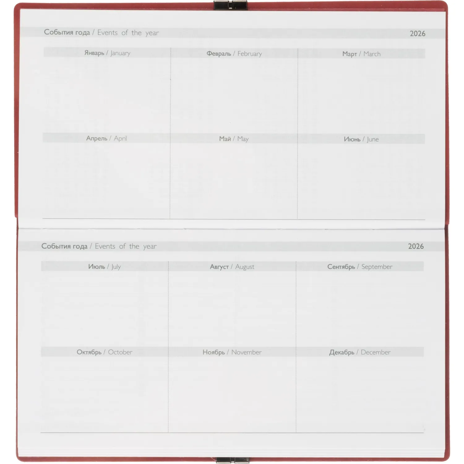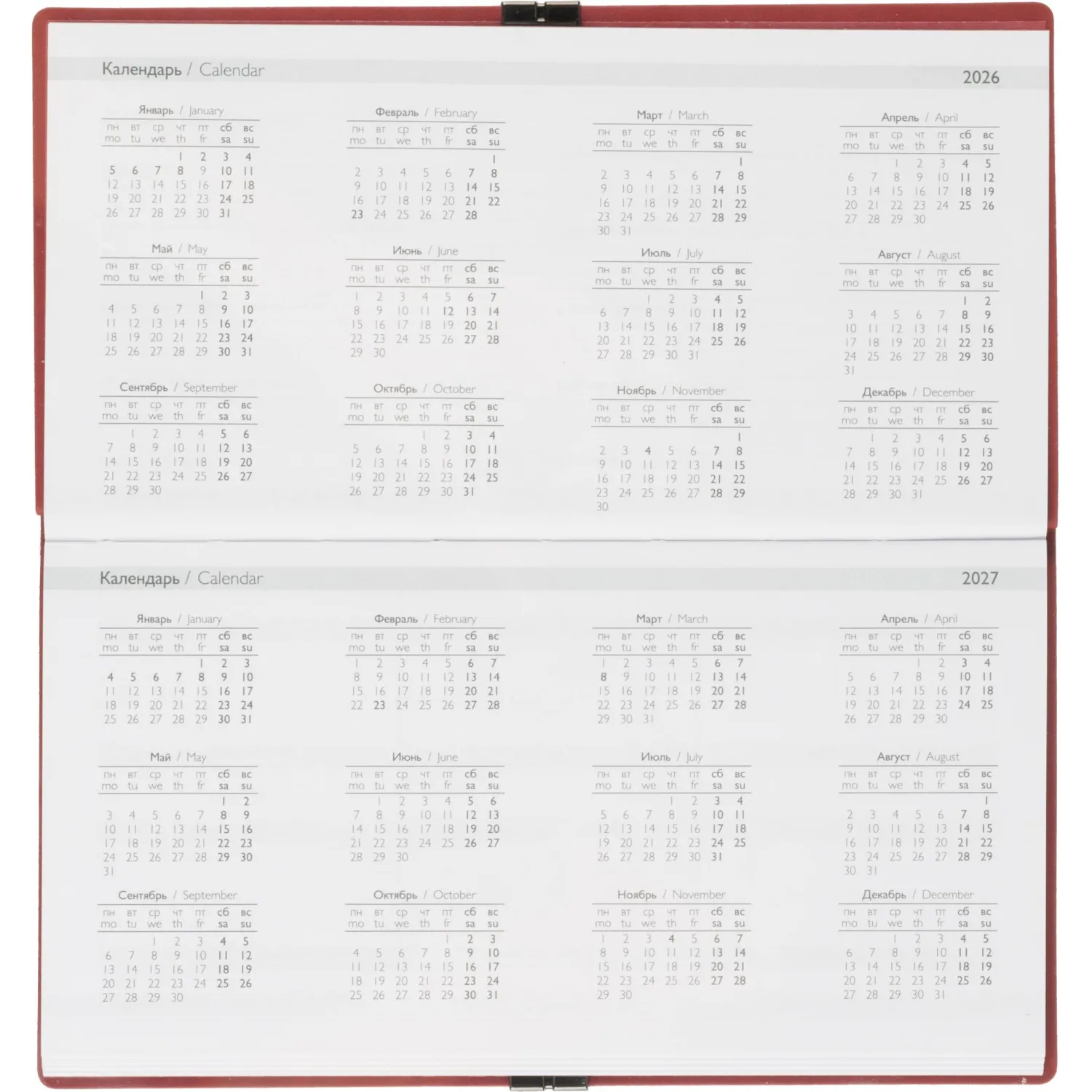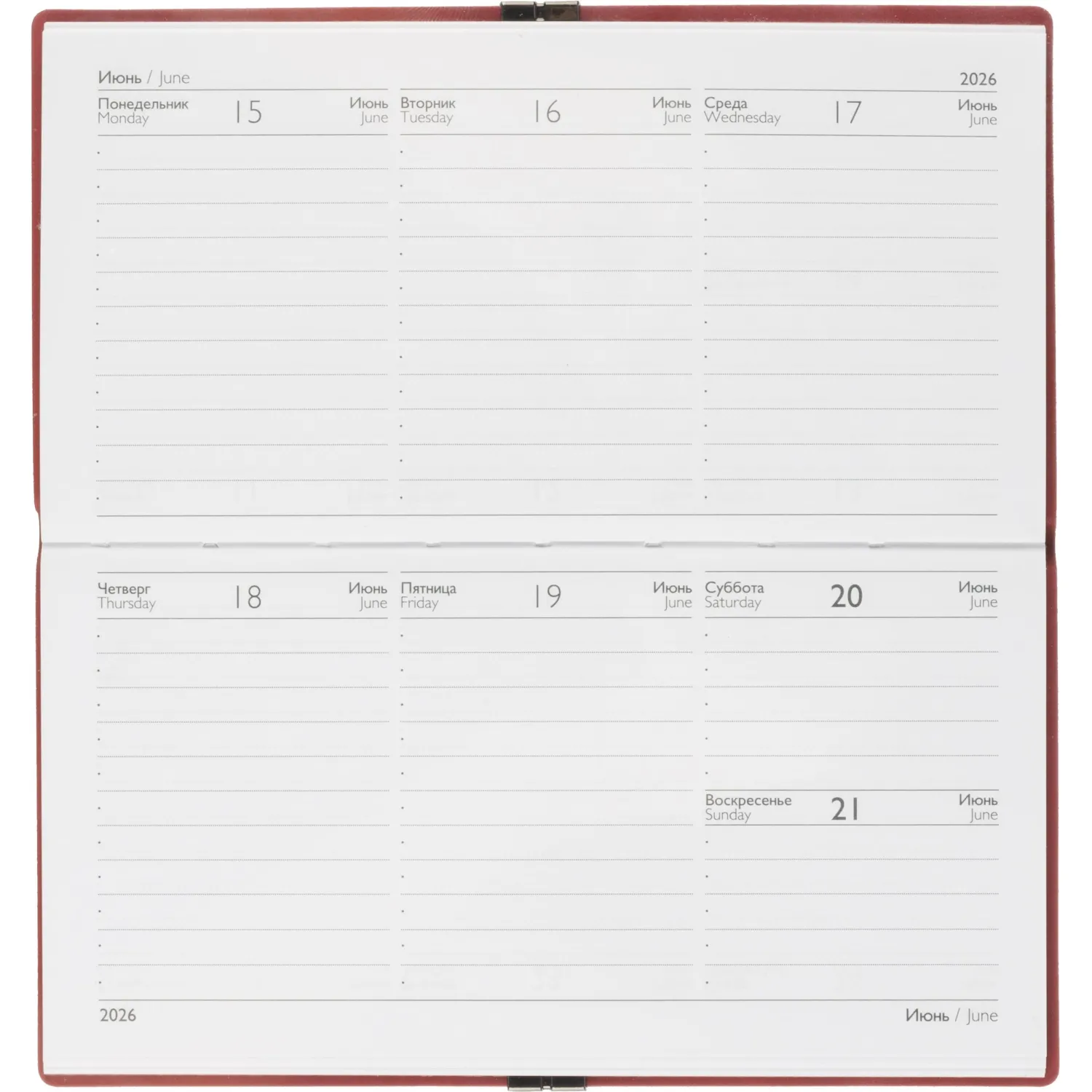 Еженедельник датированный Escalada, на 2026 год, искусственная кожа, размер 175×95 мм, 64 листа, красный с фиксирующей резинкой. Обложка: мягкий переплёт, блинтовое тиснение, обстрочка по периметру — нет, скруглённый корешок, прямые углы обложки.