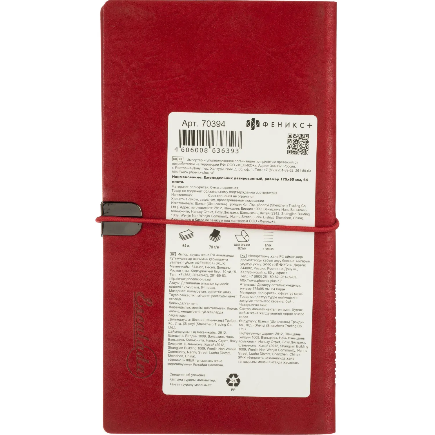 О товаре «Еженедельник датированный 2026 год Escalada искусственная кожа 175х95 мм 64 листа красный с фиксирующей резинкой, 70394»