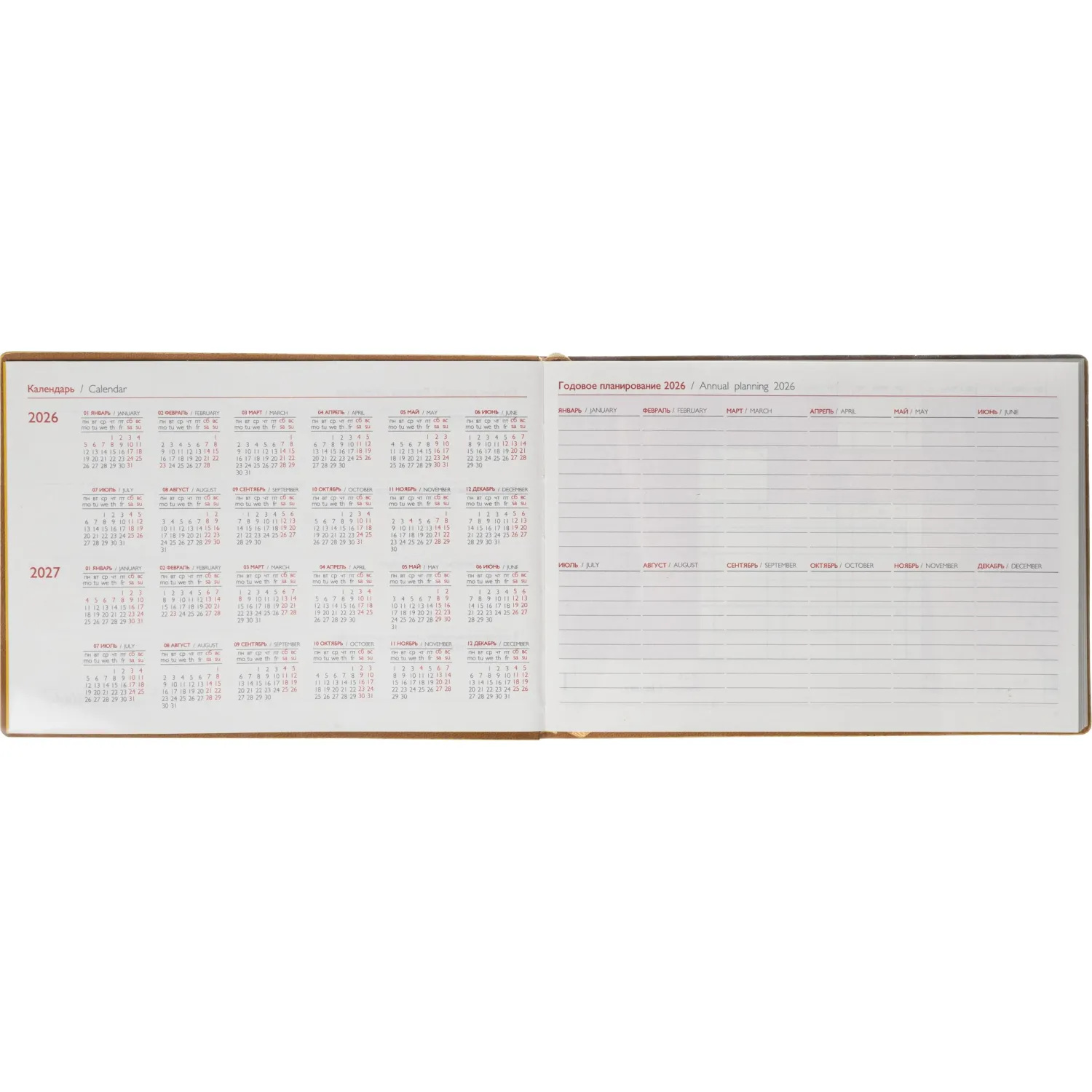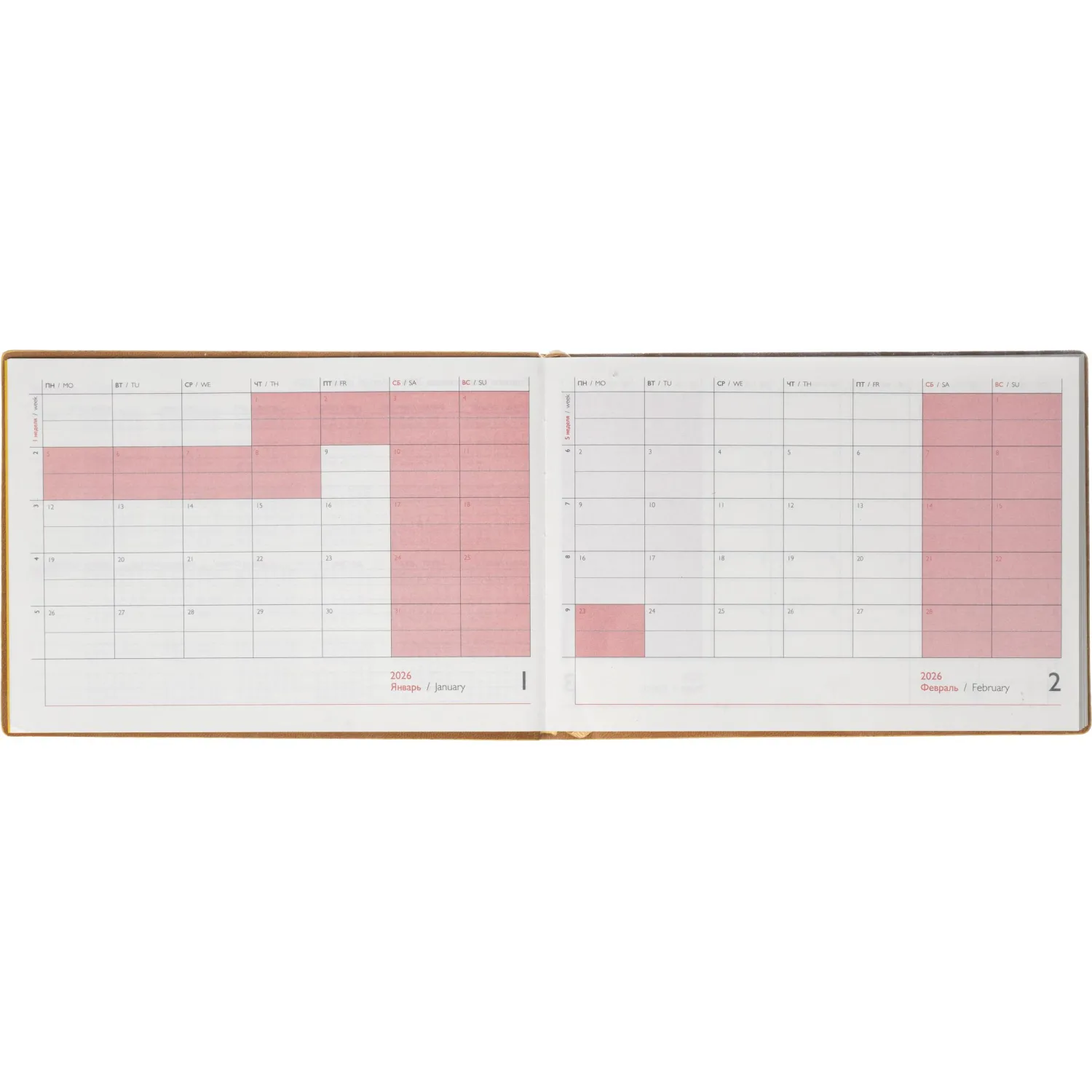 Обложка: мягкий переплёт, запаянный край, блинтовое тиснение, обстрочка по периметру — нет, скруглённый корешок, прямые углы обложки. Внутренний блок: ниткошвейный, кремовый офсет 70 г/кв.м, печать в две краски (линия), прямые углы блока, перфорация углов блока — нет, справочный материал — есть. Красочность форзаца: печать пантоном. Закладка: два ляссе. Каптал: есть. Индивидуальная упаковка: ПЭТ-пакет.