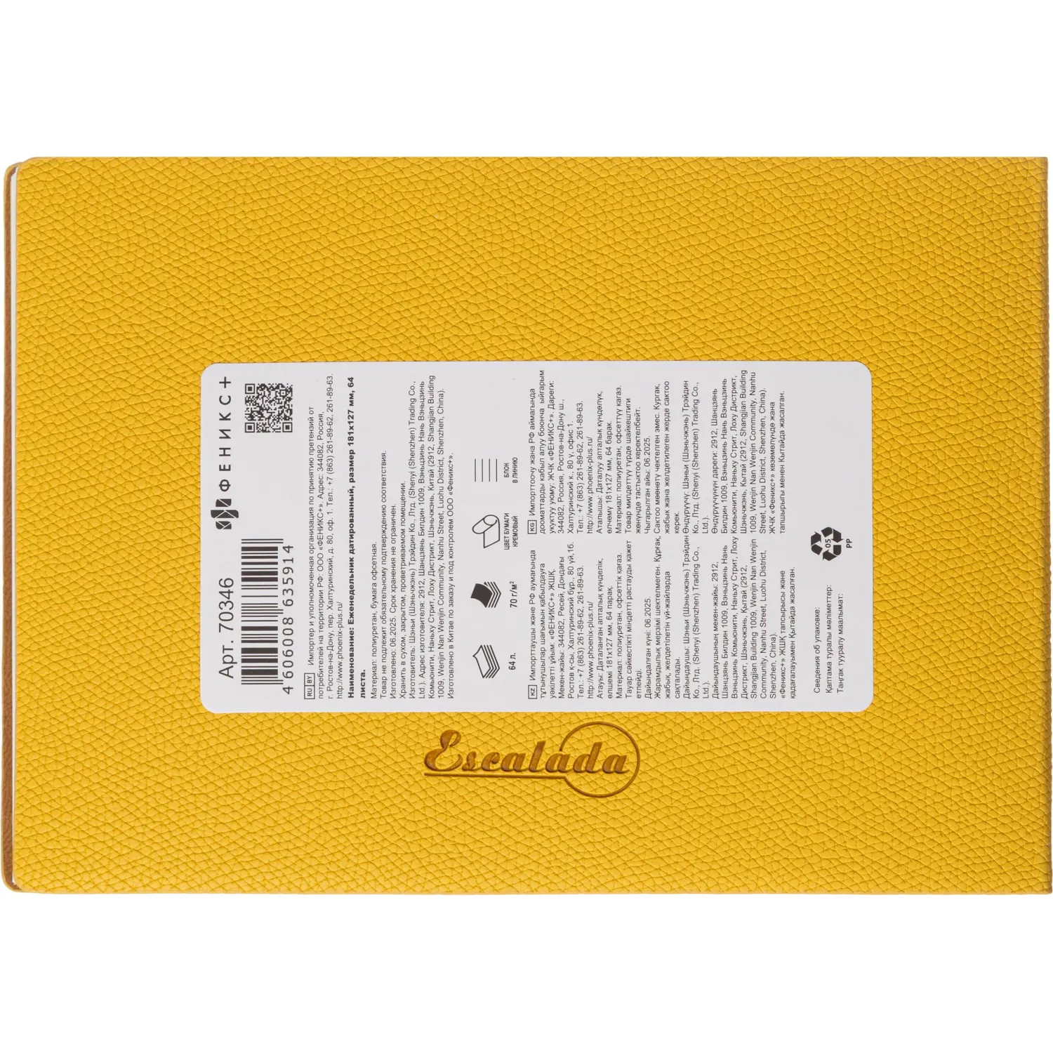 О товаре «Еженедельник датированный 2026 год Escalada искусственная кожа 181х127 мм 64 листа, 70346»