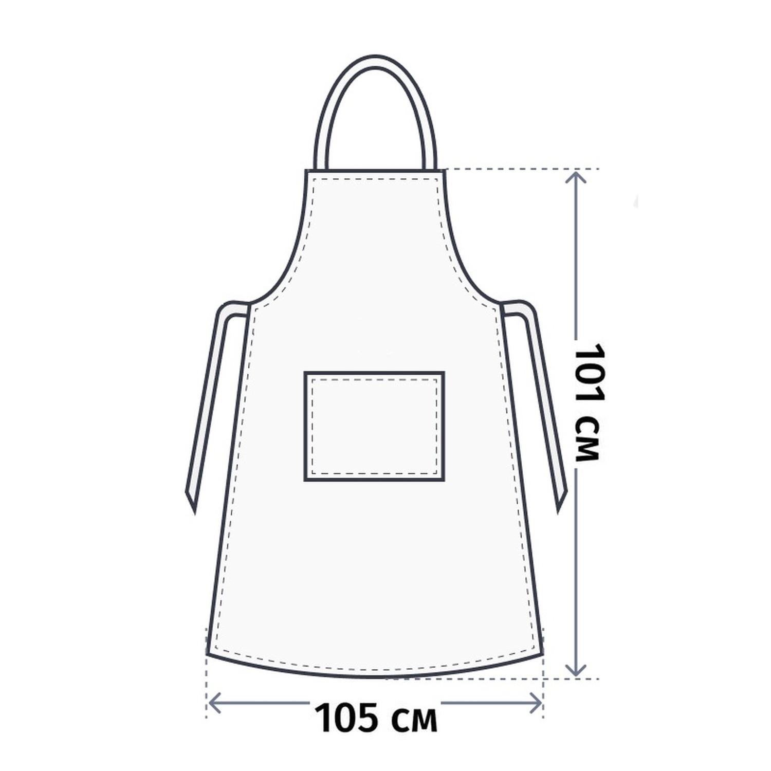 Фартук с цельнокроеным нагрудником и накладными карманом, к боковым углам на уровне талии притачана тесьма для завязывания.