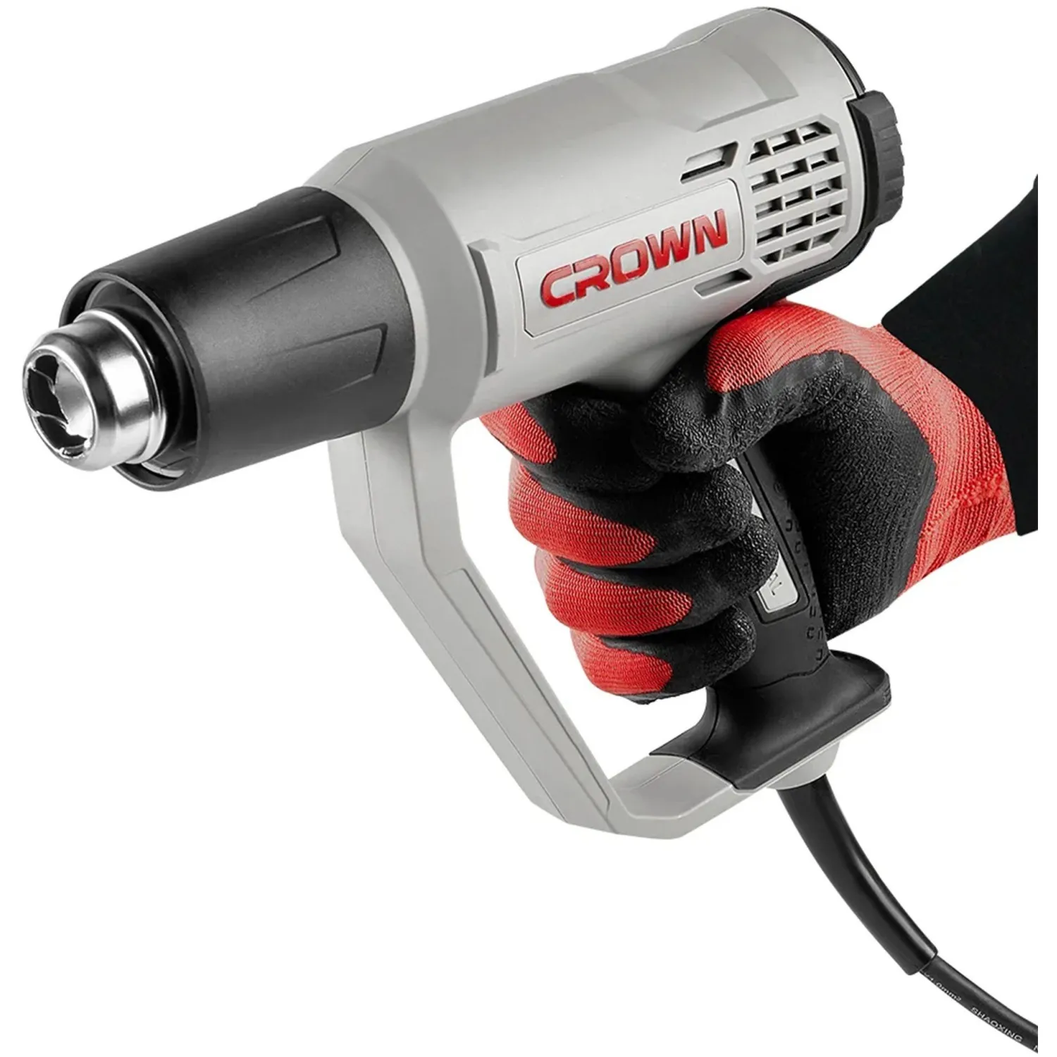 • На сопле строительного фена Crown CT19042K находится регулируемый защитный кожух.