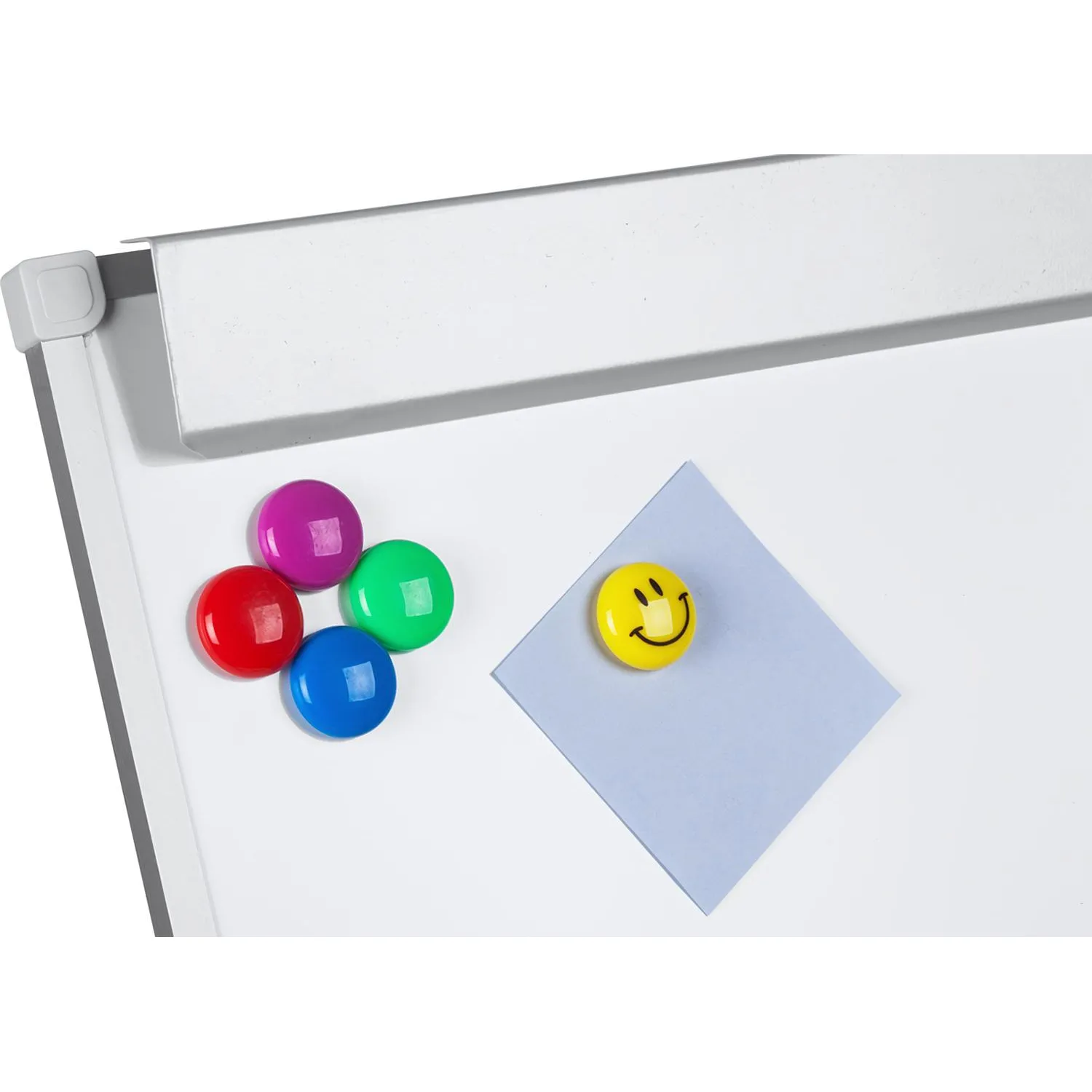 Напольный флипчарт используется для записей специальными маркерами и размещения различной информации с помощью блокнота и магнитов. Такое универсальное демонстрационное оборудование идеально подойдёт для офиса и учебных заведений. А ещё его можно использовать дома. Это очень удобно! Лаковое покрытие доски гарантирует долгий срок службы изделия. Материал рамы — алюминий, отличается прочностью и износостойкостью. Основание — металлическая тренога, позволяет разместить доску для маркеров так, как Вам будет необходимо. Размер рабочей поверхности — 70×100 см. Регулируемая высота от 105 до 180 см позволяет настроить флипчарт под любой рост. Магнитная маркерная доска имеет подвесы для блокнота на винтах и полочку для маркеров. Мобильная доска будет полезна для обучения и подготовки к школе. Ведь на ней можно без проблем что угодно писать, а затем, когда потребуется, стирать. Процесс получения знаний станет ещё ярче и интереснее. Дети с лёгкостью смогут использовать её для рисования и реализации творческих идей. Студенты найдут ей применение во время планирования и создания разнообразных заметок. Магнитно-маркерная доска помогает облегчить проведение совещаний, презентаций и тренингов. Записи на ней выглядят красиво и эффектно. Это отличный подарок для учащихся и учителей. Доска будет чудесным сюрпризом на 1 сентября или хорошее окончание учебного года.