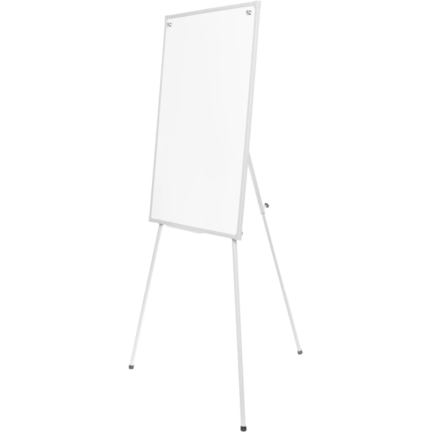 Флипчарт магнитно-маркерный на треноге незаменим для проведения презентаций и совещаний. Белая металлическая лаковая поверхность доски флипчарта предназначена для письма специальными маркерами сухого стирания для белых досок, размещения информации с помощью магнитов и оснащена держателями для блока бумаги. Размер доски — 90×60 см. Рамка доски и полочка для принадлежностей выполнены из ПВХ профиля. Возможность регулировки по высоте позволит настроить флипчарт под любой рост. Перед первым использованием необходимо удалить защитную плёнку с магнитно-маркерной поверхности.