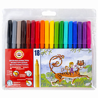 Пластиковый корпус снабжен вентилируемым колпачком. Не высохнут без колпачка в течение 3 месяцев. Идеальны для ежедневного использования маленькими художниками от 5 лет. Легко смываются с большинства тканей и кожи. Фиксированный пишущий узел не даст стержню провалиться даже при сильном нажатии. В наборе 18 ярких цветов. Пишущий узел диаметром 2 мм позволяет рисовать тонкими линиями толщиной 0,8 мм.