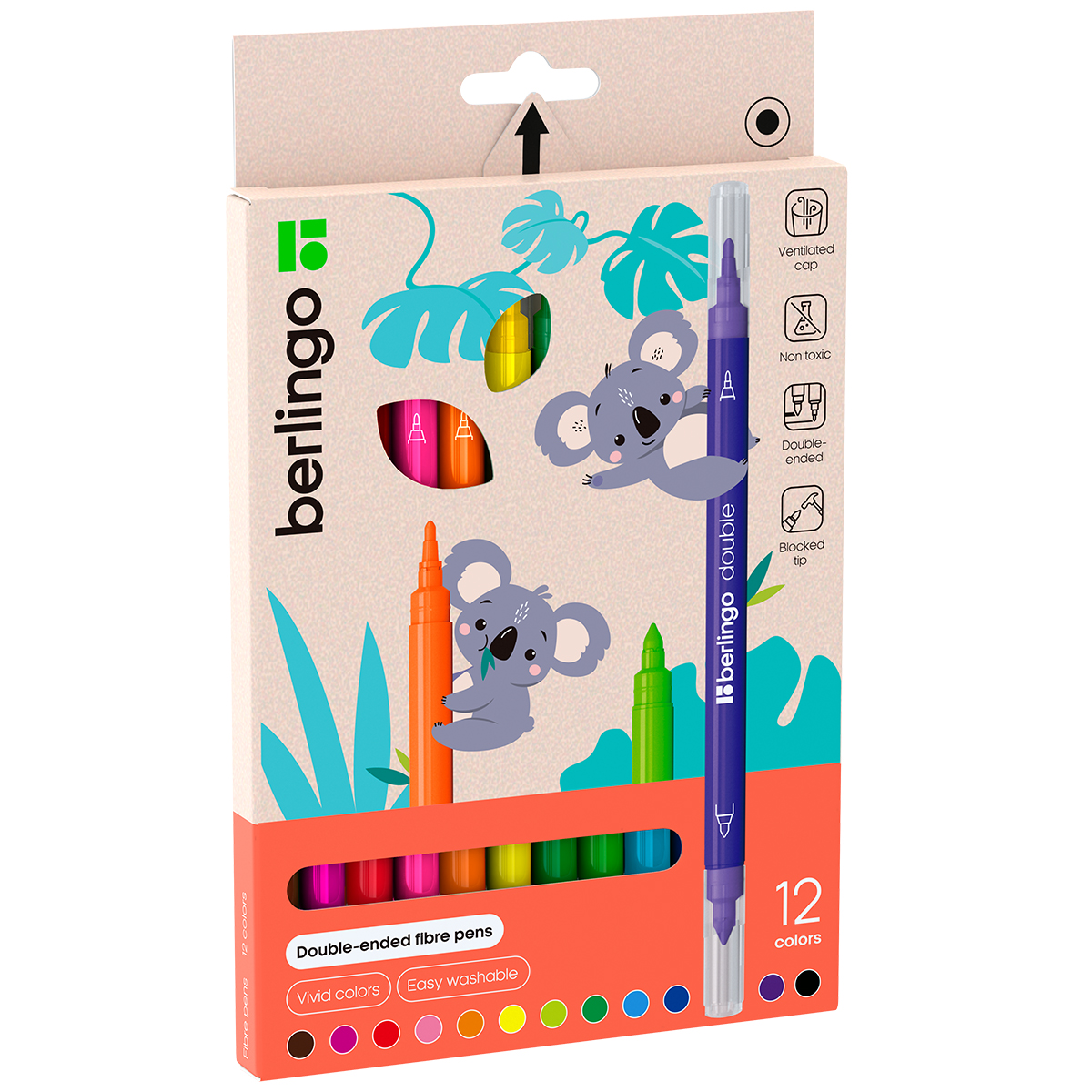 О товаре «Фломастеры двусторонние Berlingo "Double", 12цв., 12шт., смываемые, картон, европодвес»