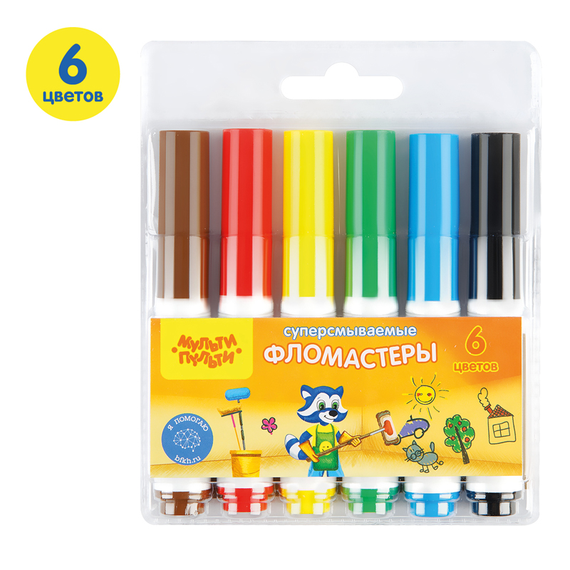 О товаре «Фломастеры Мульти-Пульти "Приключения Енота", 06цв., утолщенные, суперсмываемые, блистер»