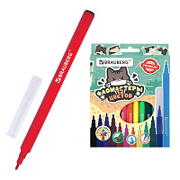 Обладают яркими цветами в количестве 12 штук. Имеют удобную круглую форму корпуса, длина которого 145 мм, а диаметр - 8 мм. Благодаря толщине линии письма 1 мм и диаметру пишущего узла 1,8 мм процесс раскрашивания становится легким. Длина письма составляет 600 м: такого расхода хватит надолго. Фломастеры легко смываются с большинства материалов и кожи. Корпус изготовлен из качественного полипропилена, который значительно продлевает срок службы фломастеров. Колпачок оснащен специальными прорезями для вентиляции, которые делают использование фломастеров более безопасным. Рекомендованы для детей от 3-х лет.