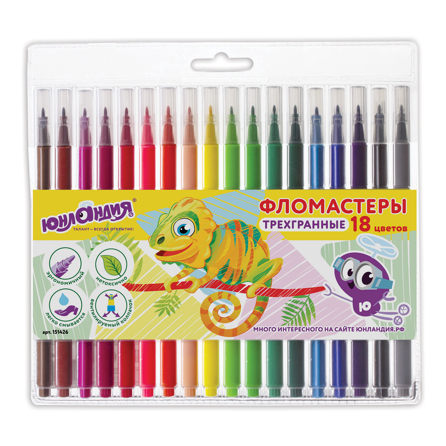 О товаре «Фломастеры ЮНЛАНДИЯ 18 цветов, "ЗООПАРК", трехгранные, вентилируемый колпачок, 151426»