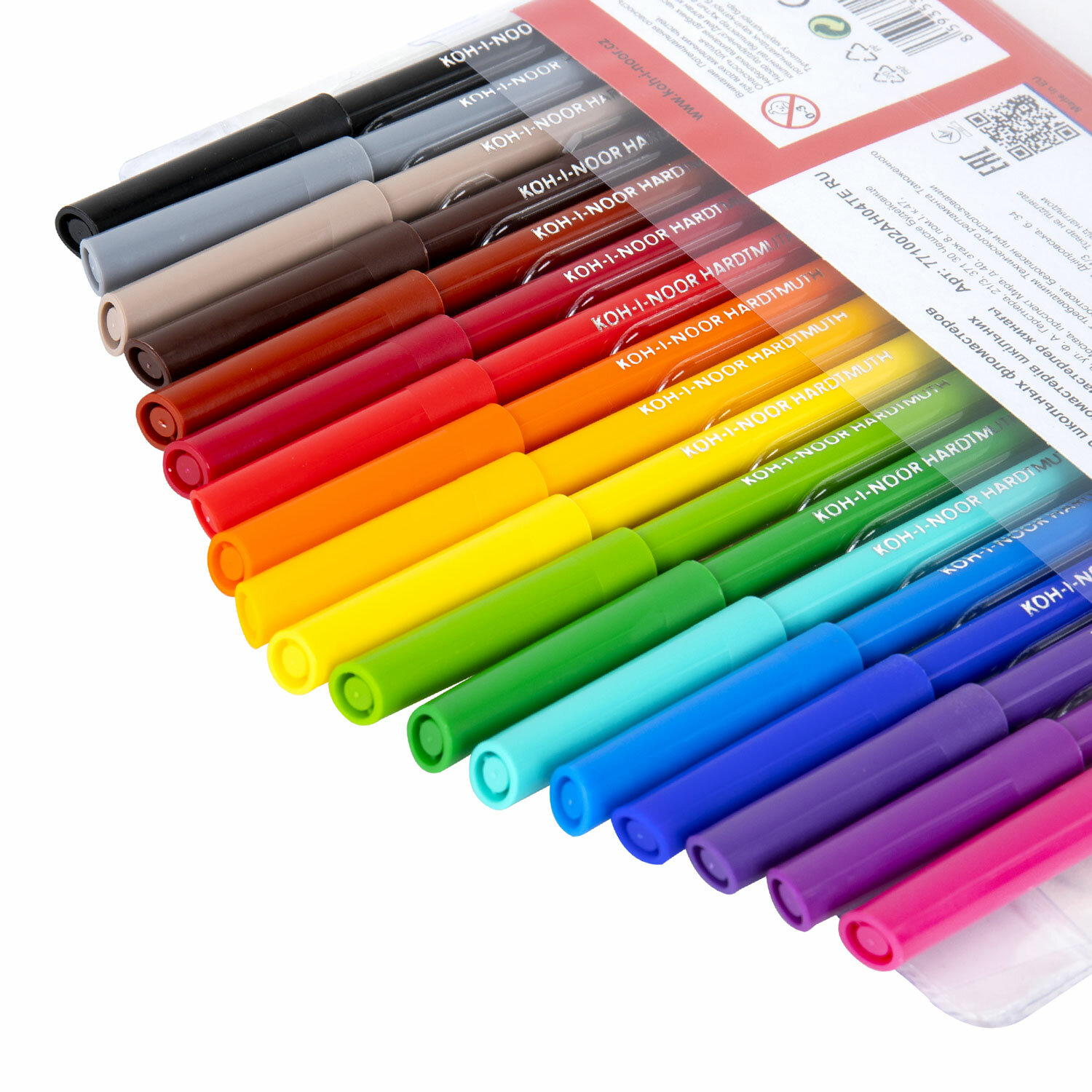 О товаре «Фломастеры KOH-I-NOOR, 18 цветов, смываемые, трехгранные, пластиковая упаковка, европодвес, 771002AH04TERU»