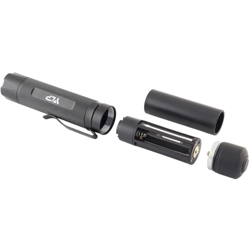 • Съёмная стальная клипса позволяет надёжно закрепить фонарь на ремне или элементах экипировки.