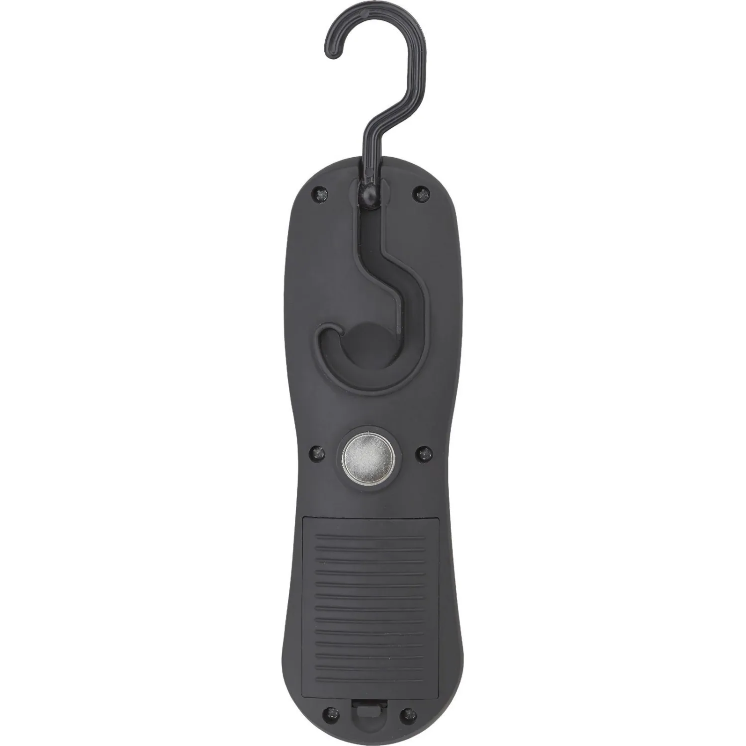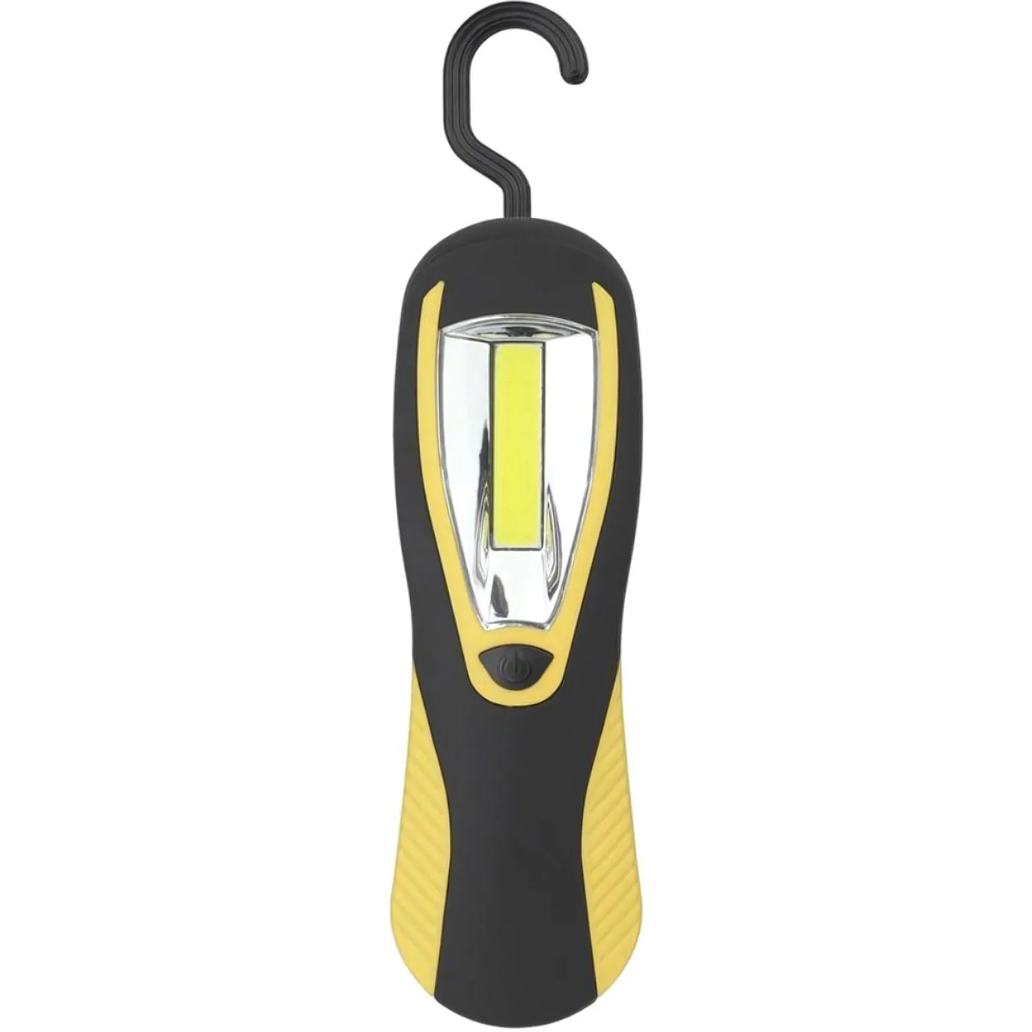 Светодиодный ручной фонарь с корпусом из пластика в чёрно-жёлтом цвете оснащён одним COB-диодом мощностью 5 Вт. Он излучает холодный белый свет с цветовой температурой 4000 К и световым потоком 110 лм. Дальность луча составляет до 20 м. Фонарь работает в одном режиме.