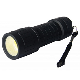Фонарь работает от трёх батареек формата AAA, которые входят в комплект, и обеспечивает до 9 часов автономной работы. Корпус выполнен из пластика чёрного цвета со степенью защиты IP44. Компактные размеры 9.5×2.5 см и вес 56 г делают модель удобной для переноски и повседневного использования.