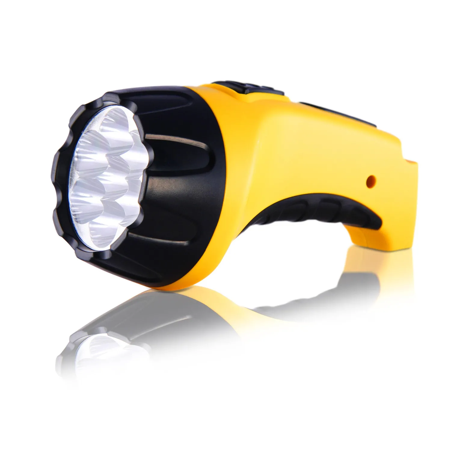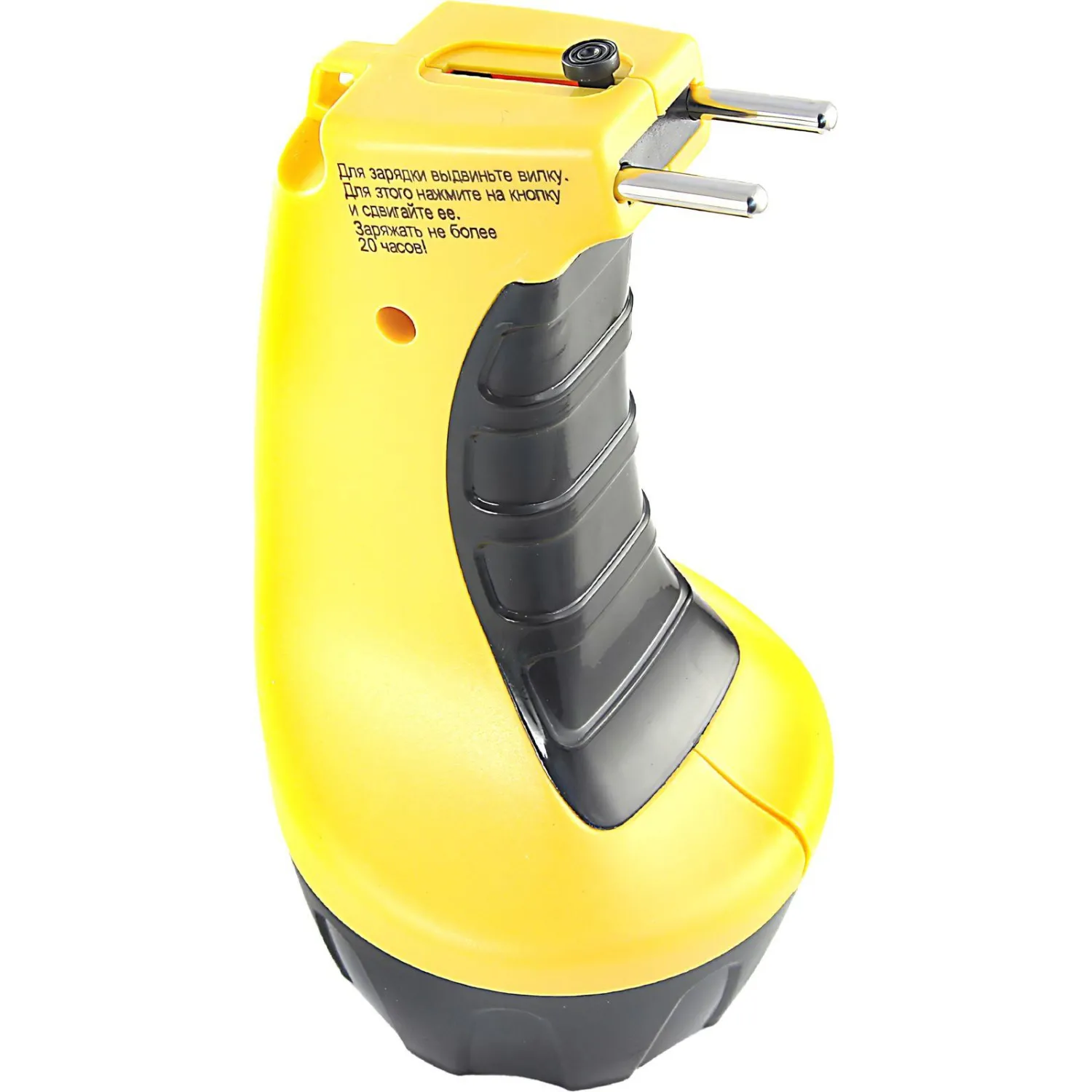 Ручной фонарь с корпусом из прочного пластика жёлтого цвета оснащён семью светодиодами мощностью 1 Вт. Он излучает холодный белый свет с цветовой температурой 6000 К и световым потоком 100 лм. Луч достигает дальности 100 м. Фонарь работает в одном режиме.