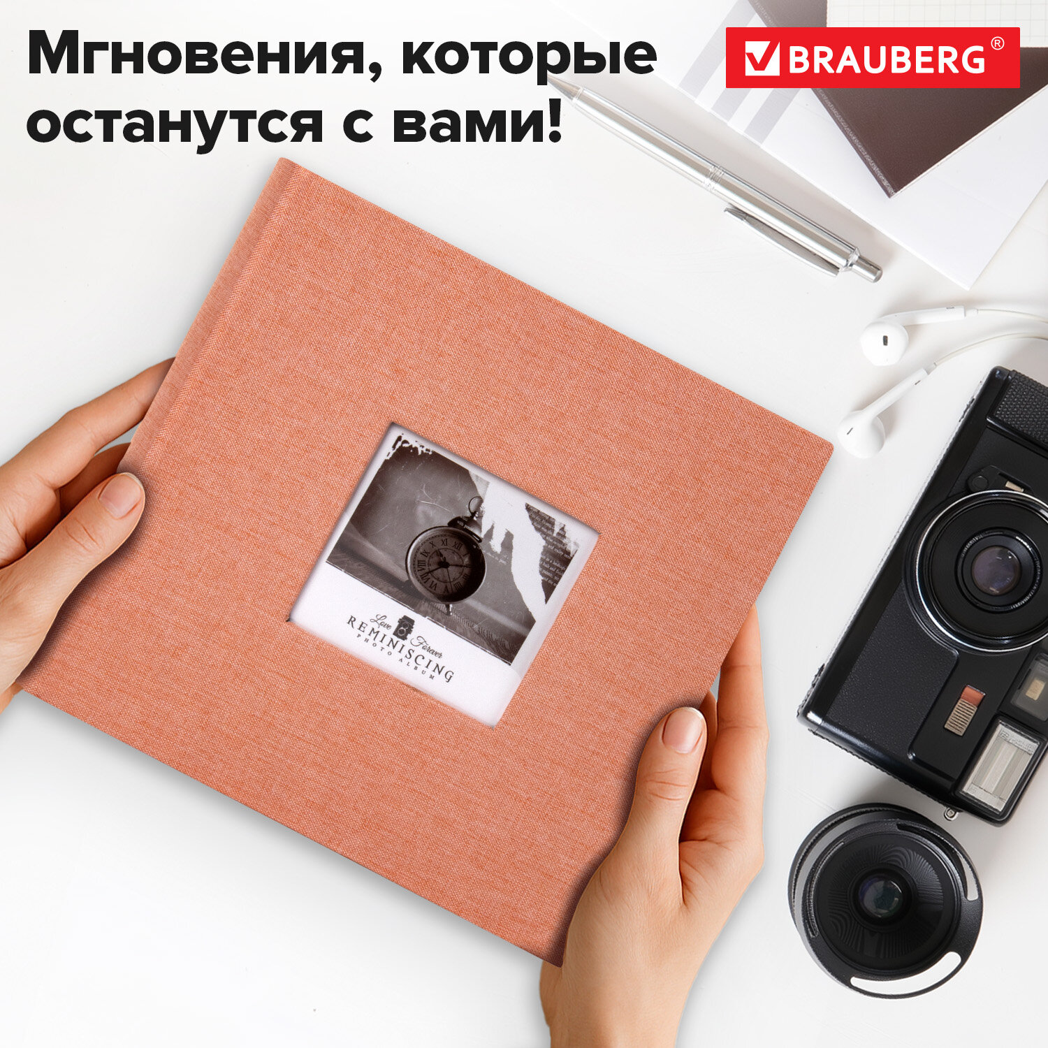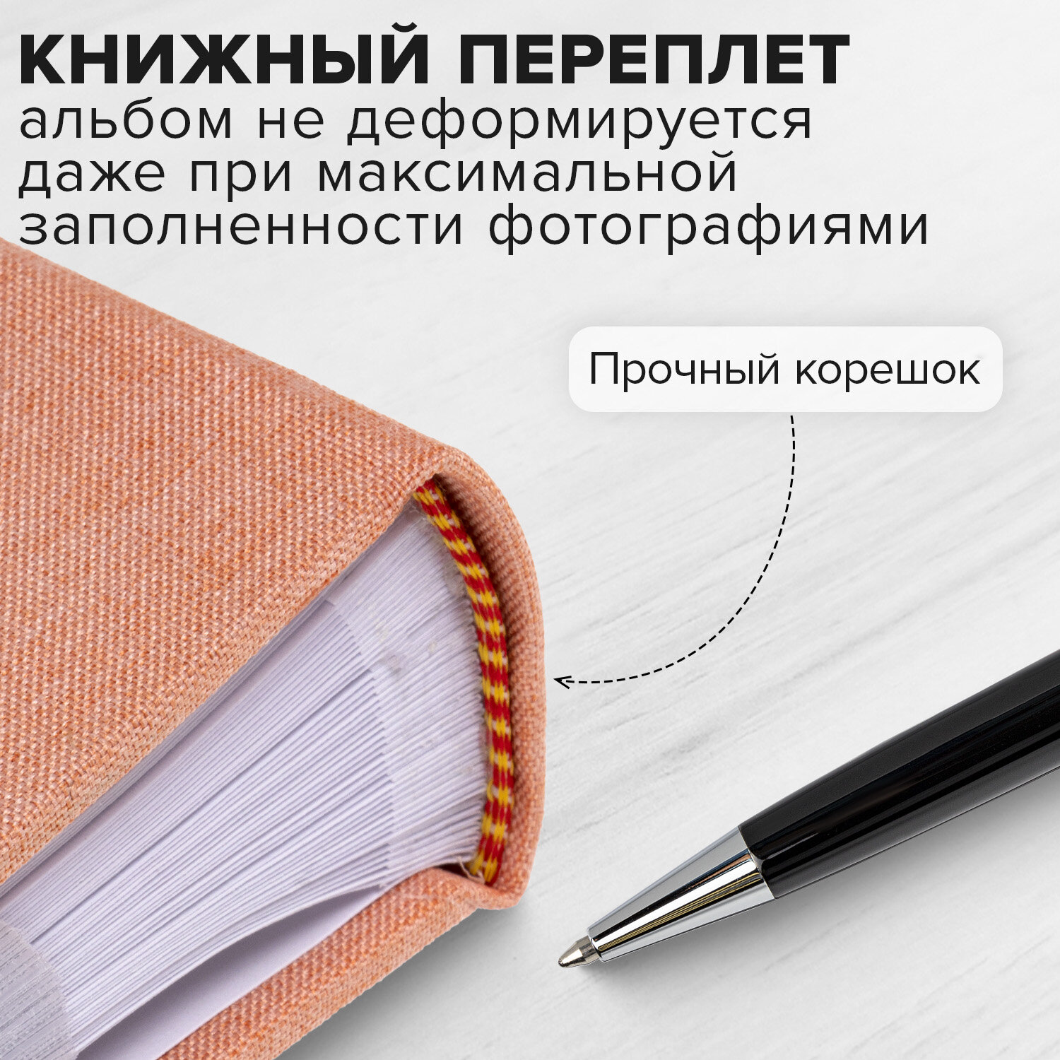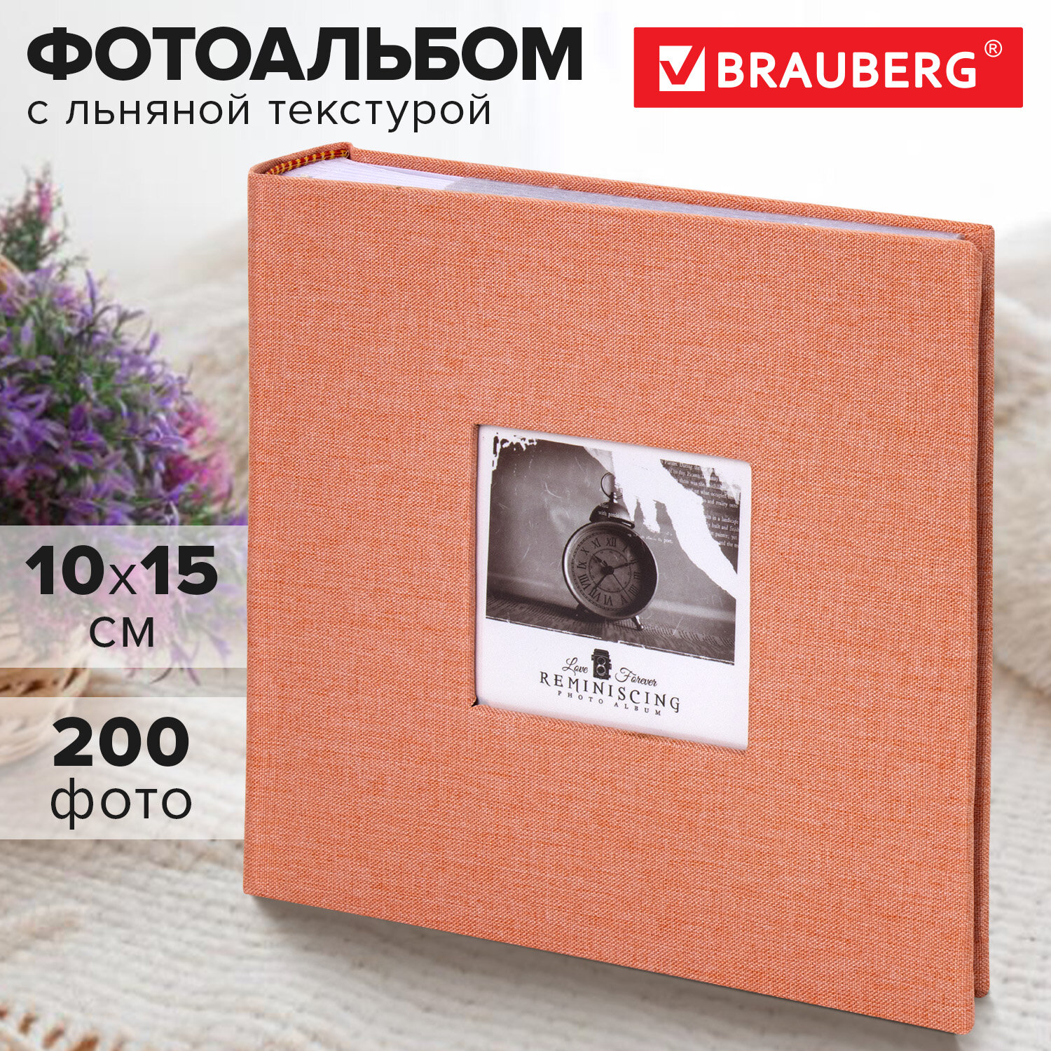 Фотоальбом BRAUBERG "Персик" на 200 фото 10х15 см, ткань, персиковый, 391190