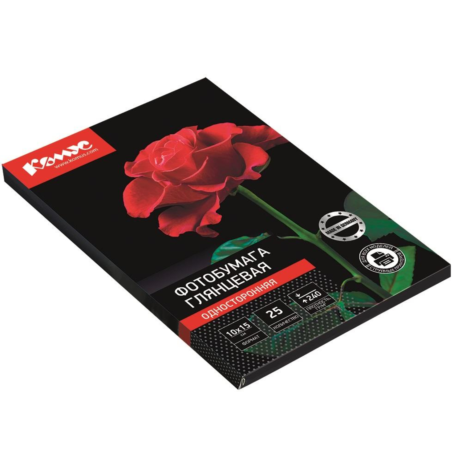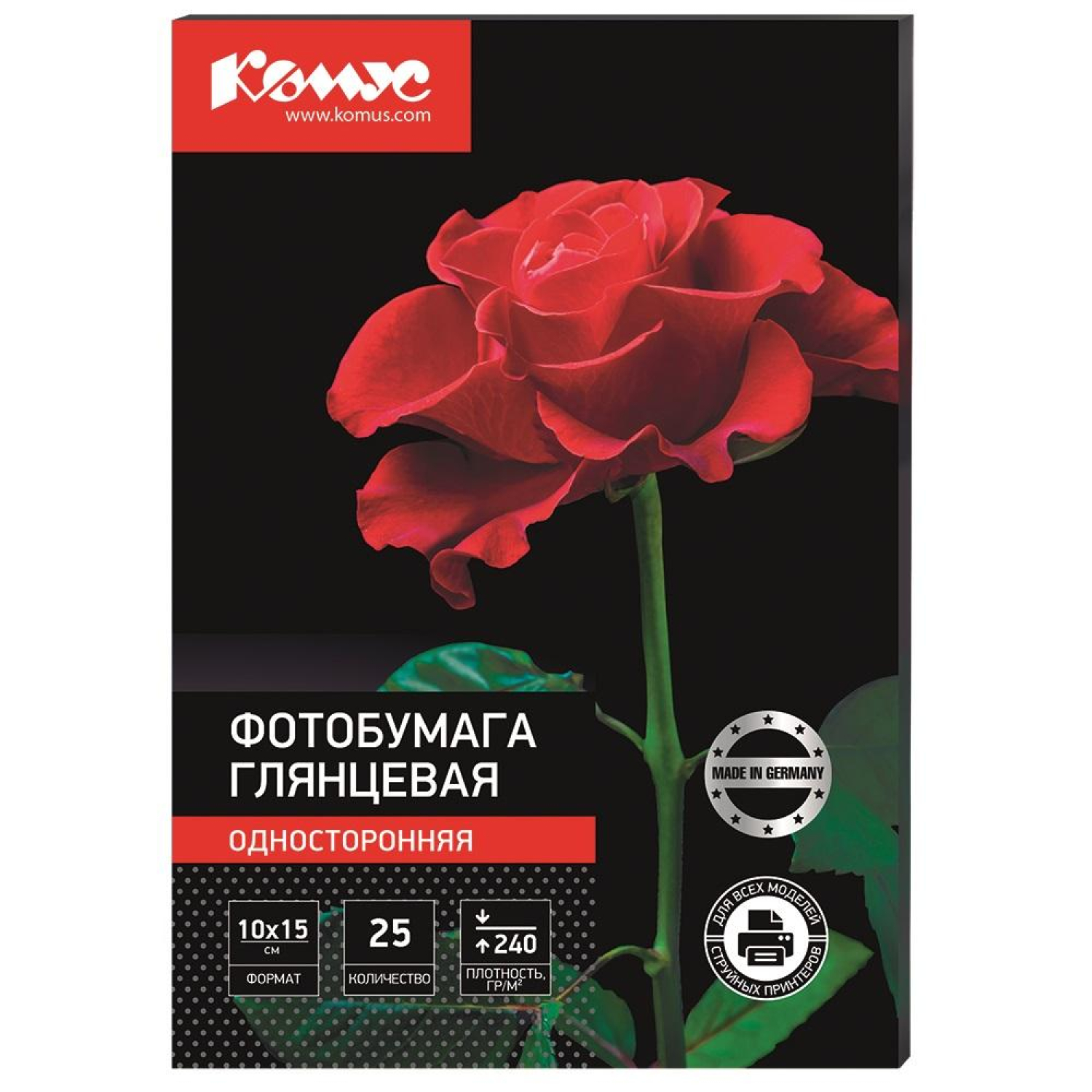 Универсальная односторонняя фотобумага Комус применяется для печати фотографий на принтерах Epson, HP, Lexmark, Canon как с пигментными чернилами, так и с водорастворимыми. Бумага с микропористым покрытием точно передает все оттенки, четкость изображения, мгновенно впитывает чернила и обеспечивает высокое разрешение (до 5760 dpi). Одна пачка содержит 25 листов формата 10×15 см, плотность которых составляет 240 г/кв.м. Рекомендована ведущими производителями офисной техники. Страна производитель: Россия.