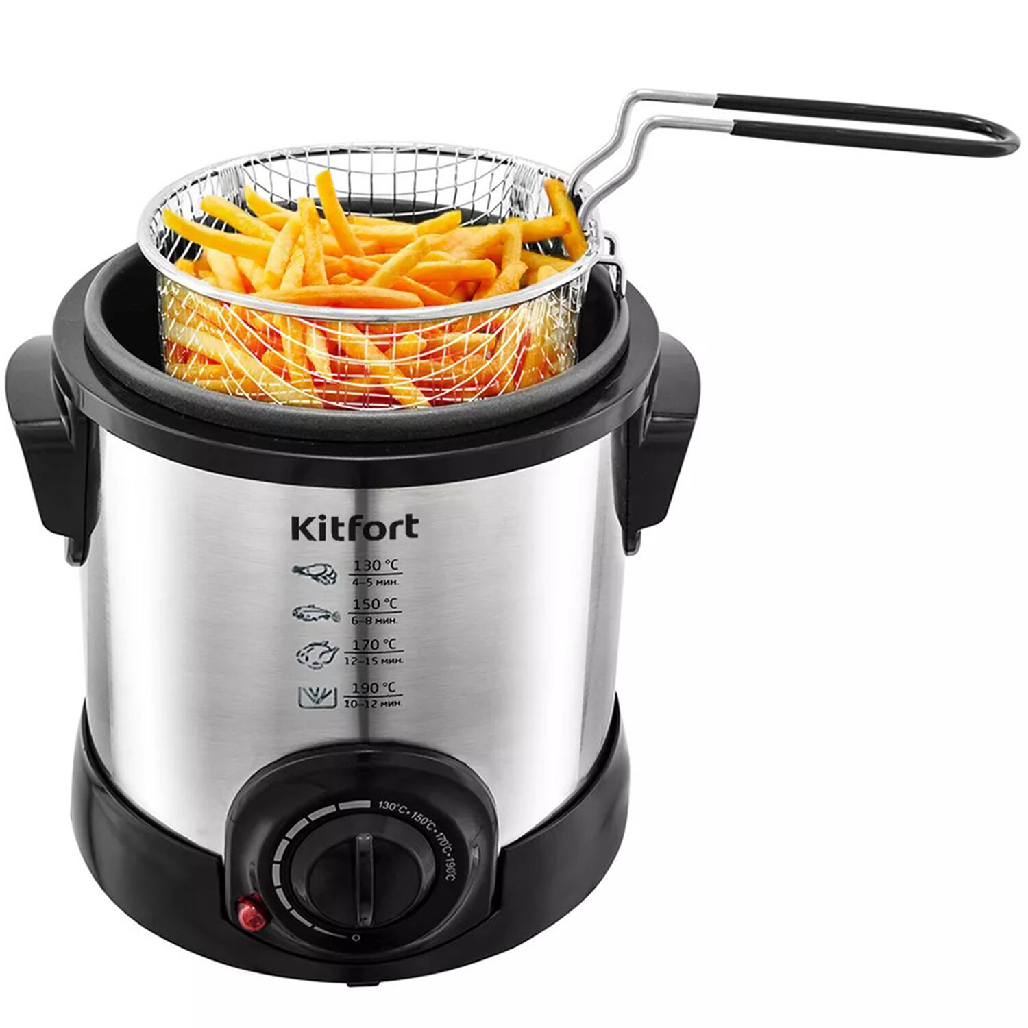 О товаре «Фритюрница KITFORT KT-2009, 1000 Вт, объем 1 л, регулировка 130-190 °С, 1 корзинка, черная/серебристая, КТ-2009»