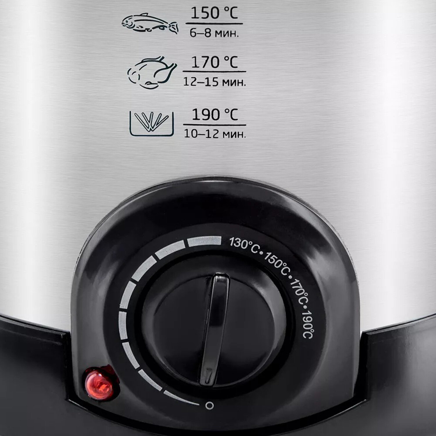 Контролируйте процесс. С помощью термостата можно плавно регулировать температуру приготовления в диапазоне от 130 до 190 °С. Индикатор нагрева горит во время работы нагревателя и гаснет, когда температура достигнет заданного значения.
