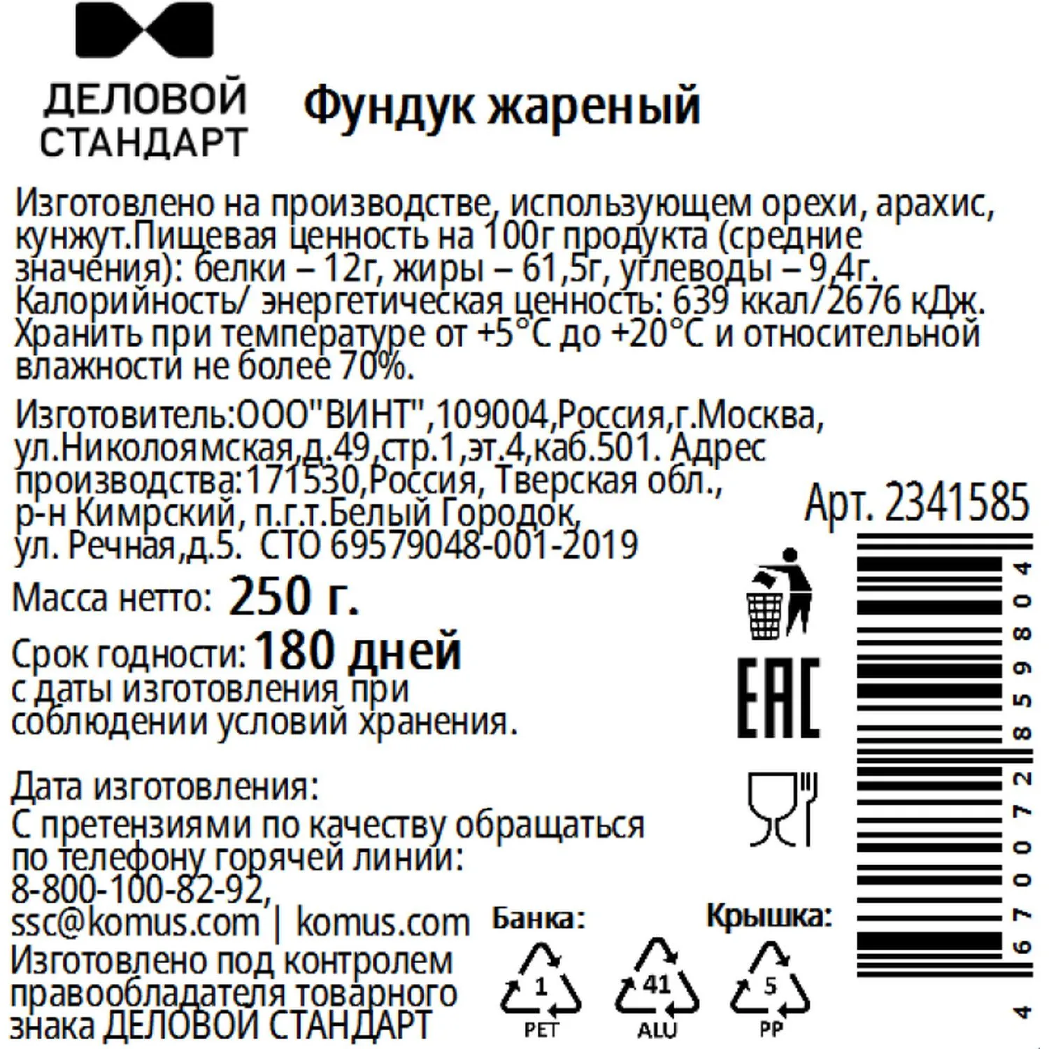 О товаре «Фундук Деловой Стандарт жареный в банке, 250 г»