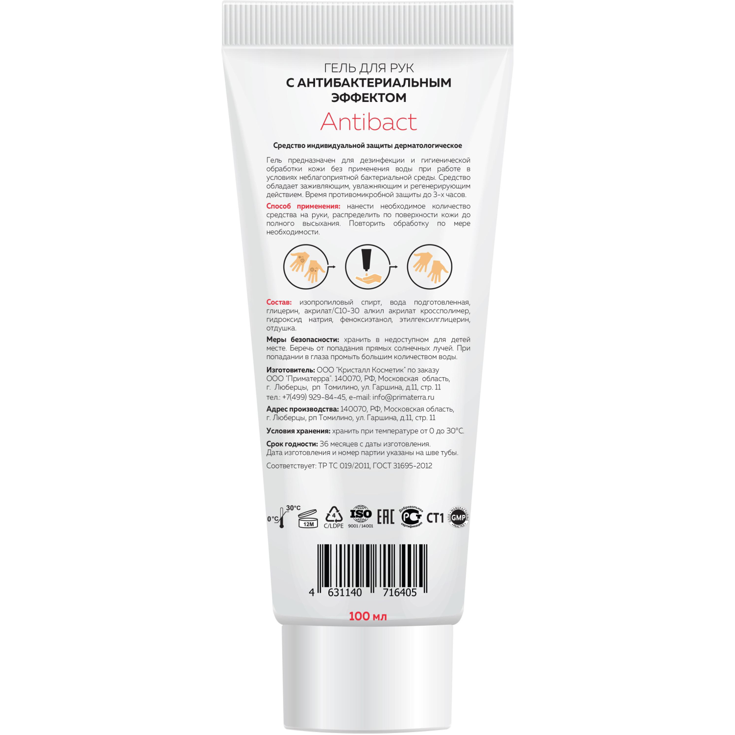 Гель антисептический M Solo Antibact рекомендуется для гигиены рук без использования воды. Гель используется в областях, требующих высокой степени гигиены: в пищевой промышленности, медицине, электронике, при работе в водопроводных и канализационных сетях, а также в любом другом месте с потенциальным источником бактериального загрязнения. Содержит ухаживающий и увлажняющий комплекс. Не содержит красителей и отдушек. Втирать неразбавленный гель в кожу рук в течение 30 секунд. Упаковка: флакон 100 мл.Условия хранения: избегать попадания прямых солнечных лучей. Срок годности: 36 месяцев с даты производства. Соответствует стандартам ТР ТС 019/2011,ГОСТ 31695-2012. Не содержит вредных веществ — силиконов, минеральных абразивов по ТР ТС 019/2011 в части безопасности средств дерматологических. Гель относится к сегменту «эконом». Качество соответствует требованиям нормативных документов ТР ТС 019-2011, произведено в соответствии с ГОСТ 31495-2012.