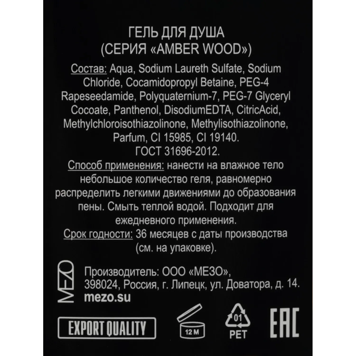 О товаре «Гель для душа 500 мл Lucio Amber Wood,12 шт/уп»