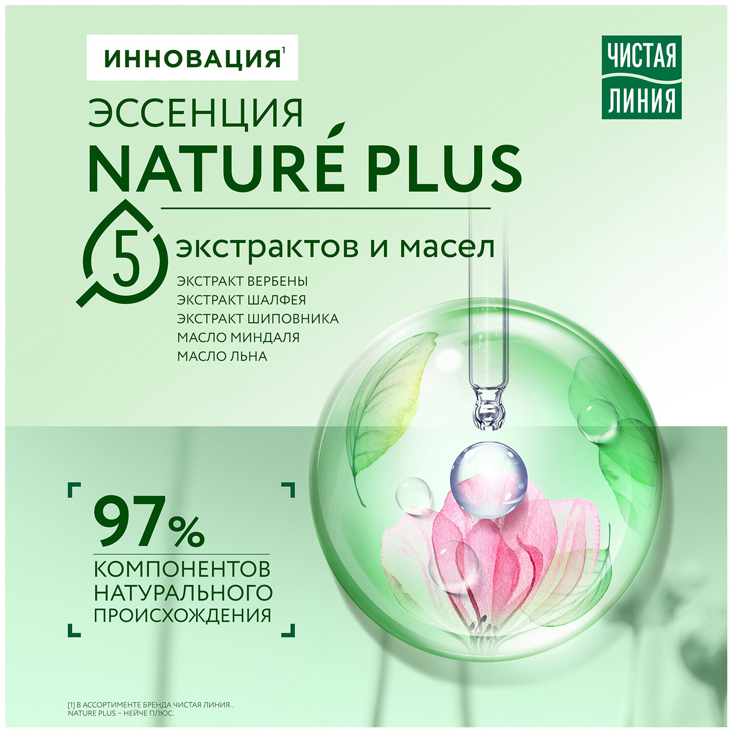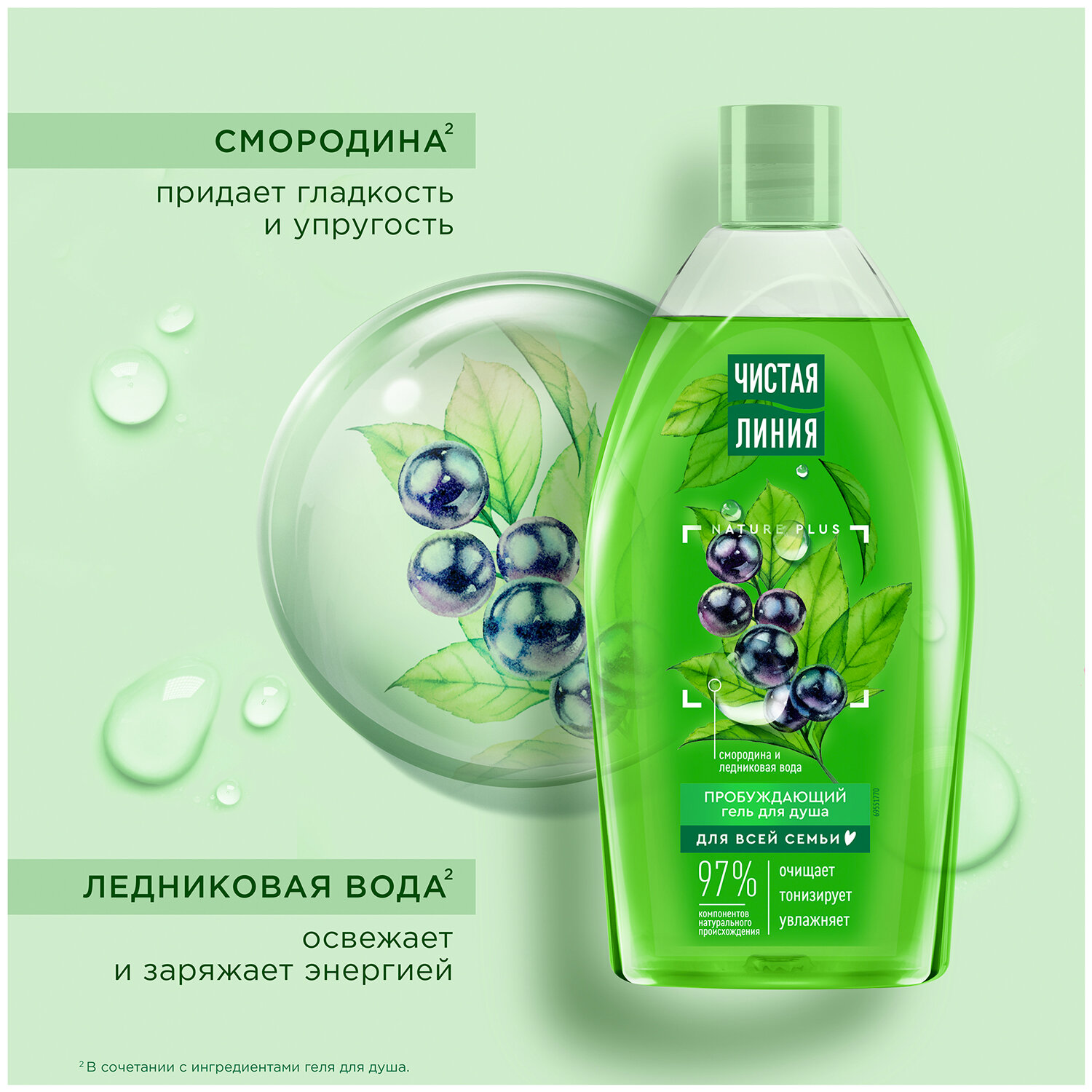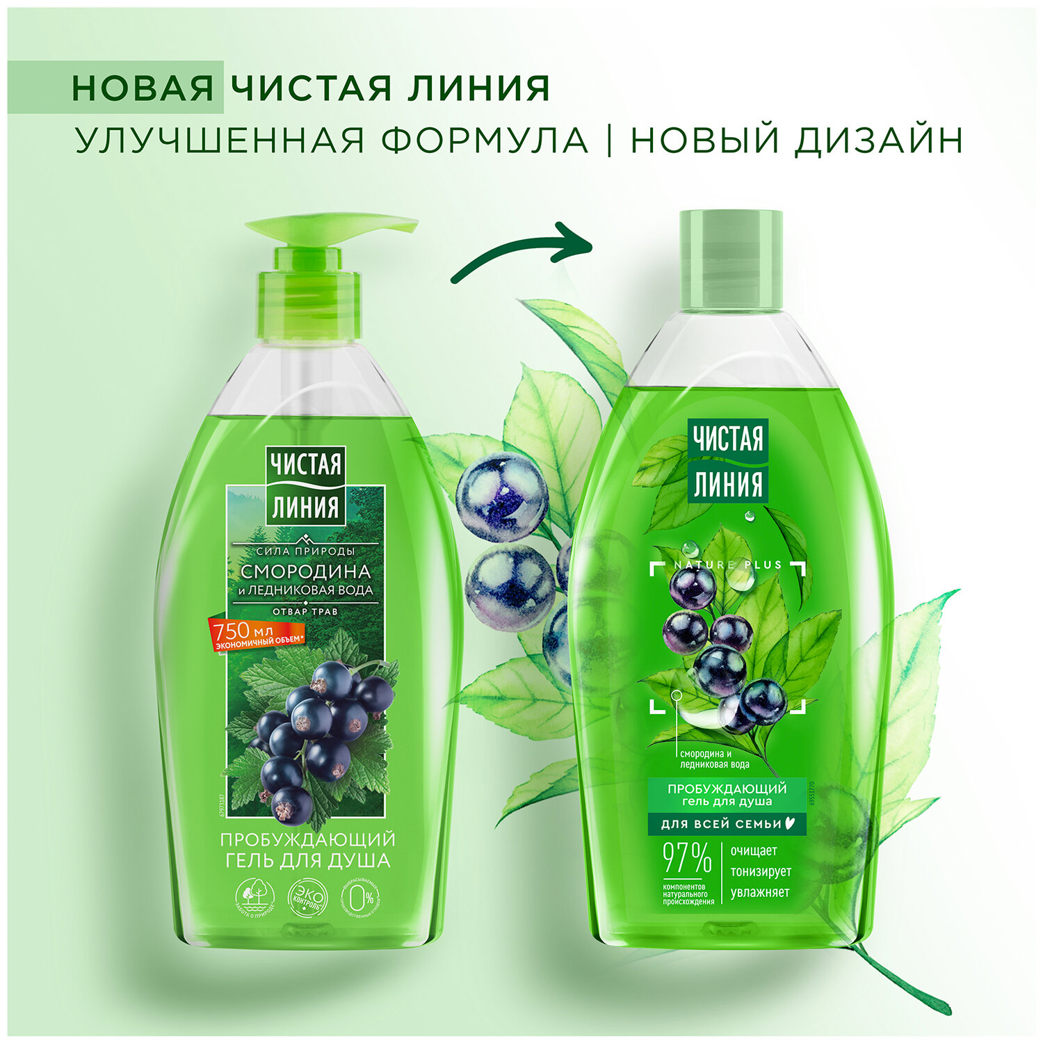 Новая формула содержит 97% компонентов натурального происхождения, в том числе смородину, ледниковую воду и эссенцию Nature Plus с 5 экстрактами и маслами.
