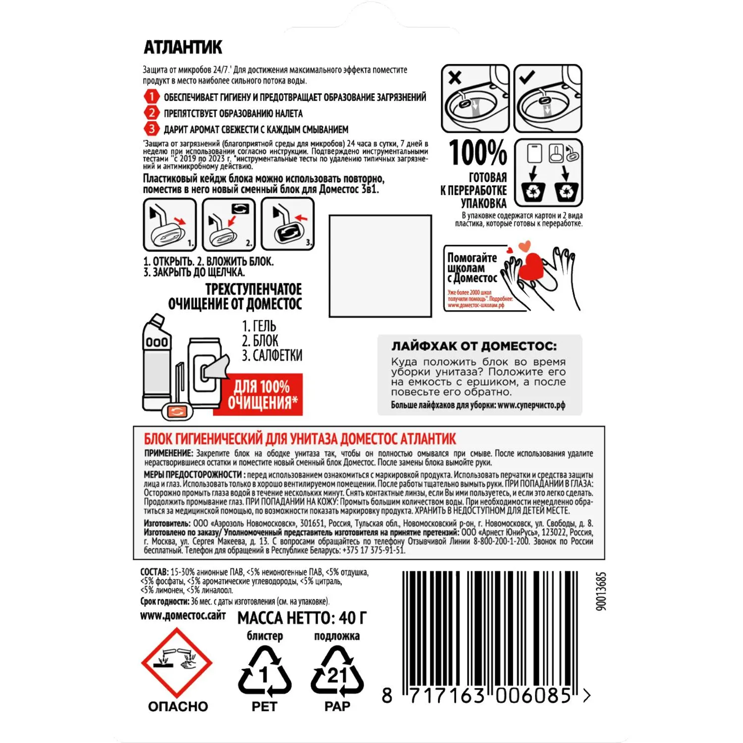 О товаре «Блок для унитаза гигиенический Domestos Атлантик 3в1»