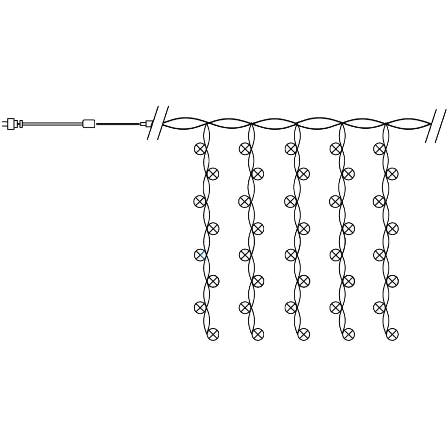 Гирлянда оснащена эффектом стробирования, который дополняет постоянное равномерное свечение, придавая праздничное мерцание. Высокая энергоэффективность и надежность обеспечиваются мощностью всего 16 Вт. Благодаря степени защиты IP44 гирлянда защищена от брызг и может использоваться в наружных условиях под навесом.