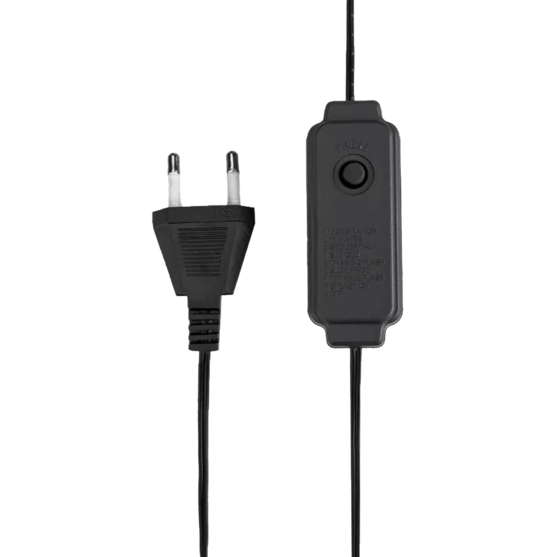 Гирлянда имеет 8 режимов свечения. Оснащена трансформатором и контроллером, который позволяет выбирать необходимый режим работы.