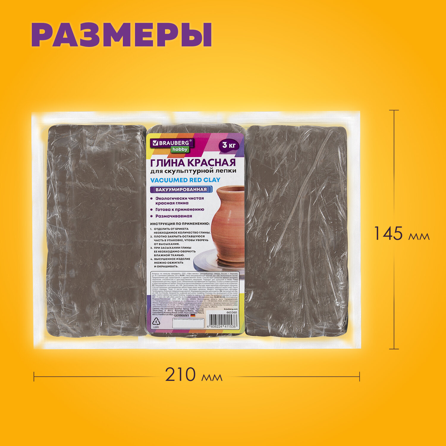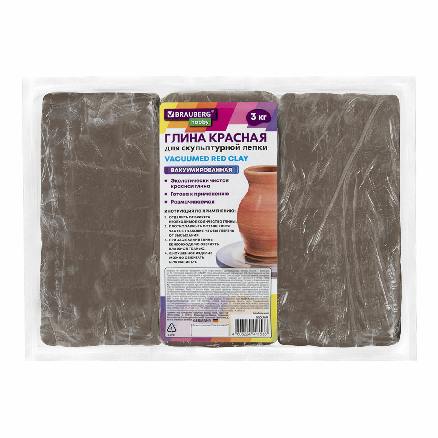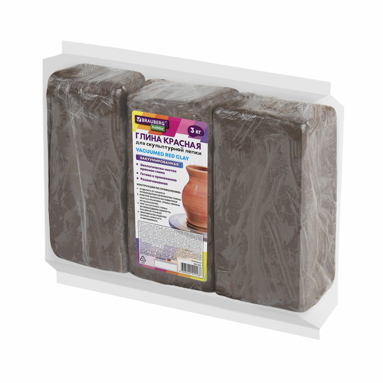 О товаре «Глина для лепки красная, 3 кг, вакуумированная, готовая, размачиваемая, BRAUBERG HOBBY, 665360»