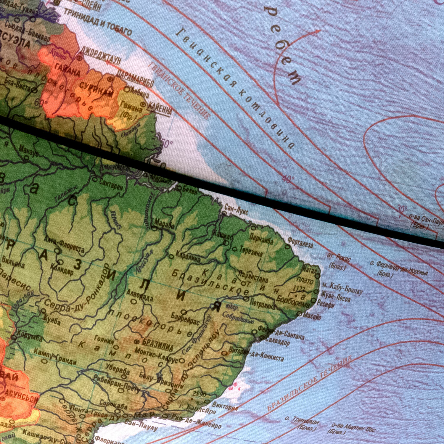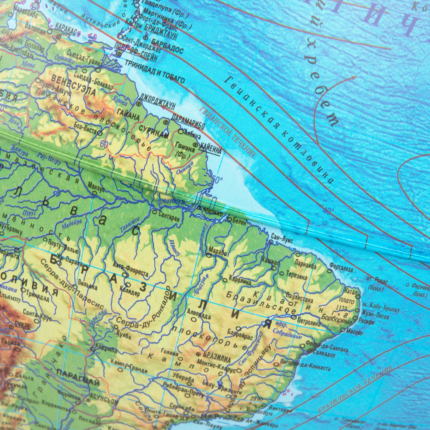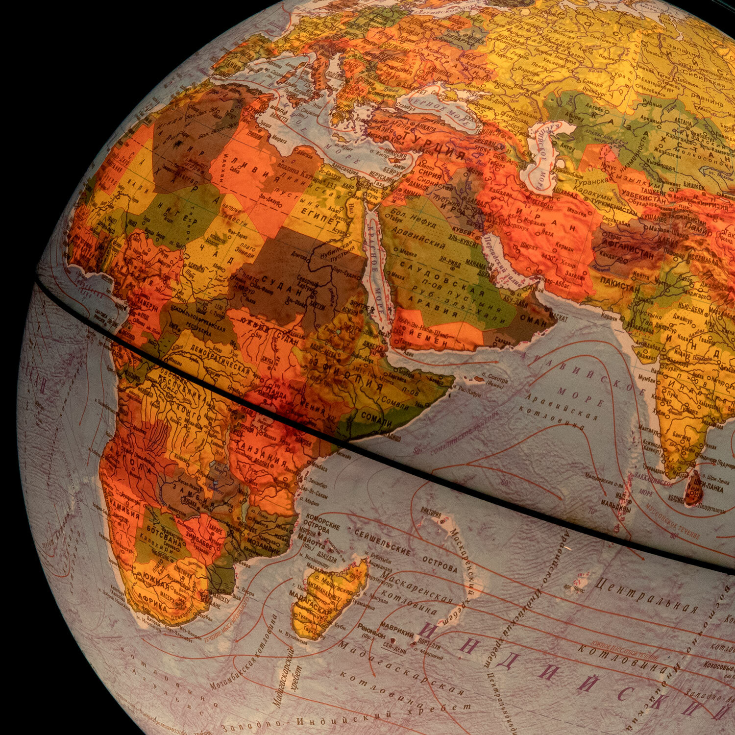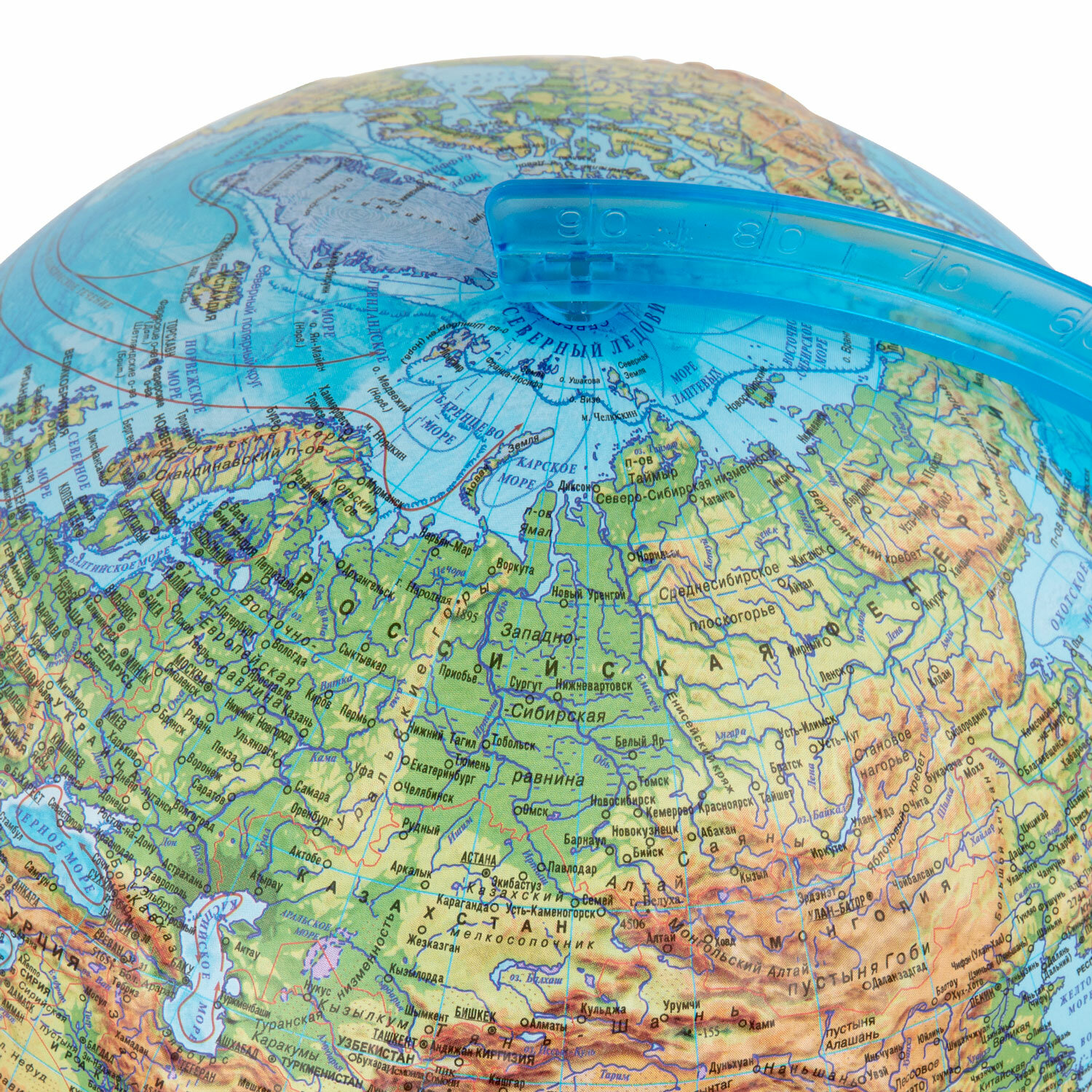 Глобус — идеальное учебное пособие для изучения географии в школе и дома. На карту глобуса нанесены страны мира, названия городов и другая полезная информация, а также детальный рельеф ландшафта. Рельефная поверхность отражена с помощью выпуклостей на поверхности глобуса. При включении подсветки глобус превращается в наглядную политическую карту: чётко выделяются границы стран, каждая из которых окрашена в свой цвет. В вечернее и ночное время глобус можно использовать как ночник. Подставка глобуса выполнена из высококачественного пластика голубого цвета. Размер глобуса: 37×28 см. Питание от сети, в комплекте поставляется шнур с выключателем.