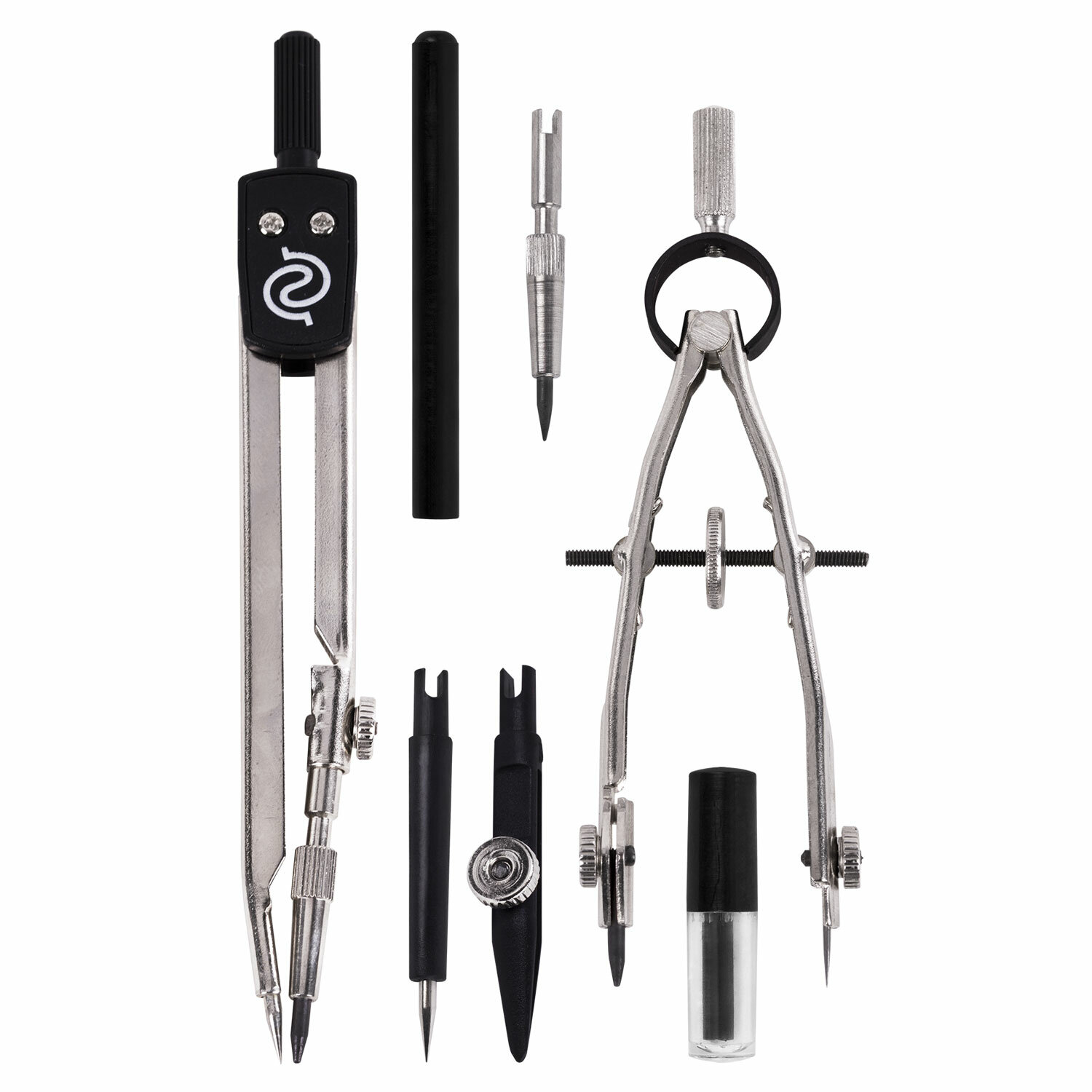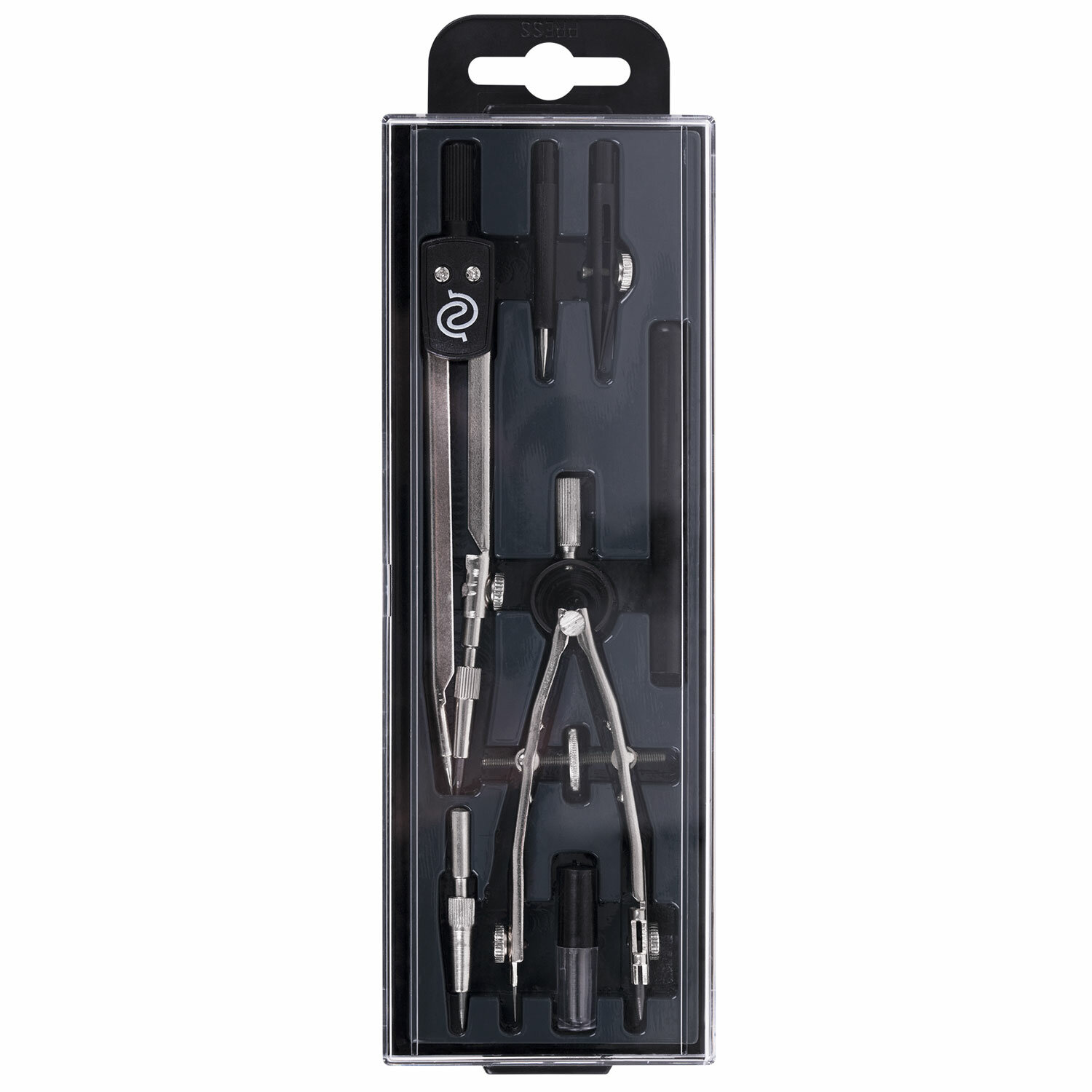 Готовальня BRAUBERG "Architect", 9 предметов: циркуль + измер + кронциркуль, рейсфедер + держатель, 2 вставки, удлинитель, грифель, 210353