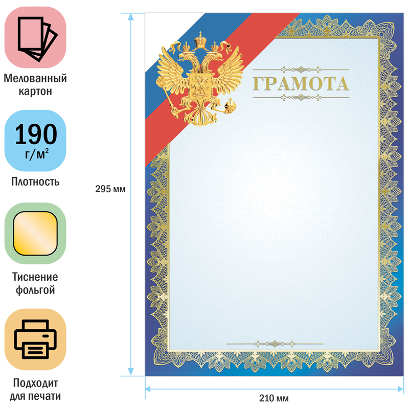 О товаре «Грамота А4, ArtSpace, мелованный картон, тиснение фольгой, синяя»