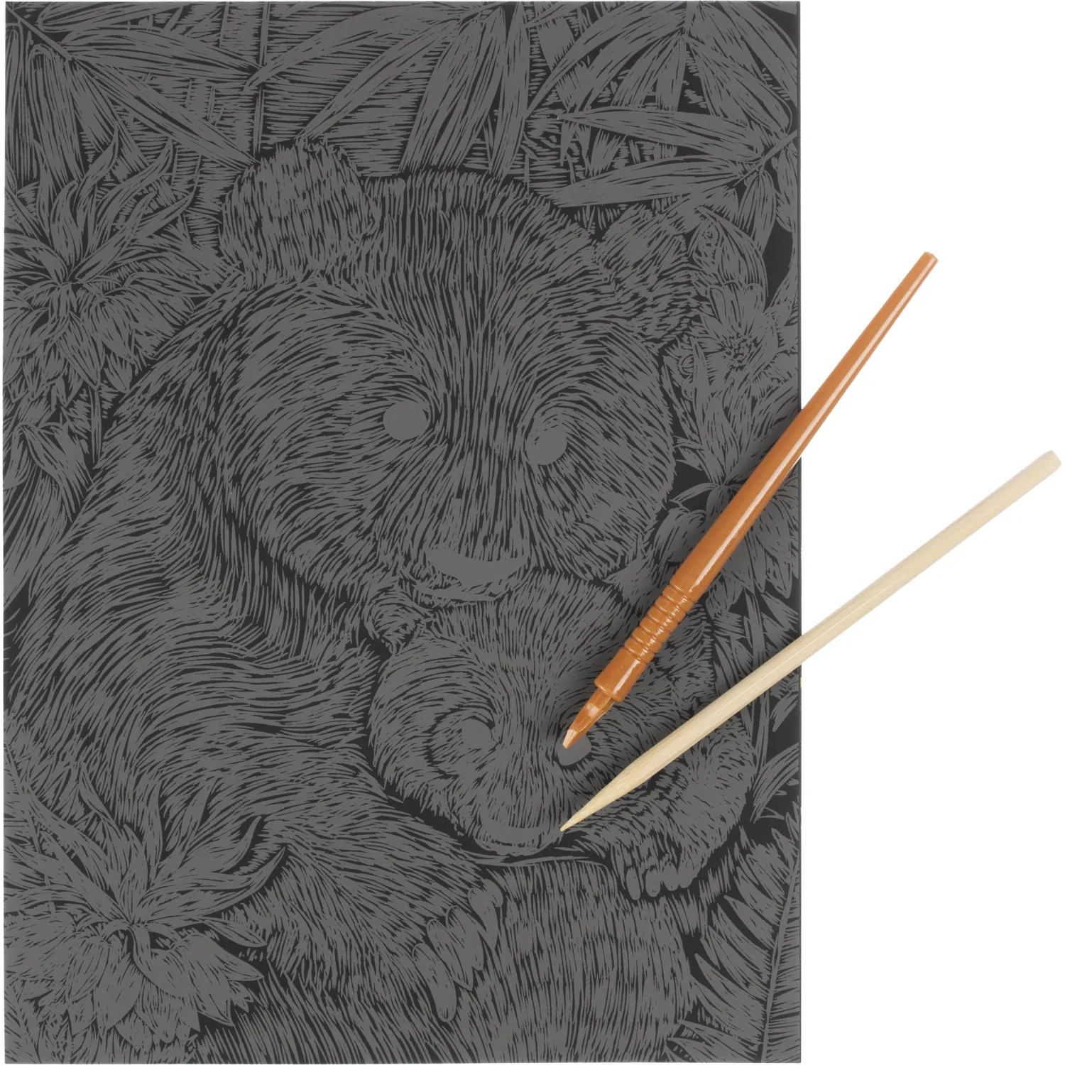 Набор для детского творчества, который развивает аккуратность, усидчивость и внимание к деталям. С помощью специального штихеля ребёнок снимает верхний слой покрытия, открывая красивое изображение с пандами.